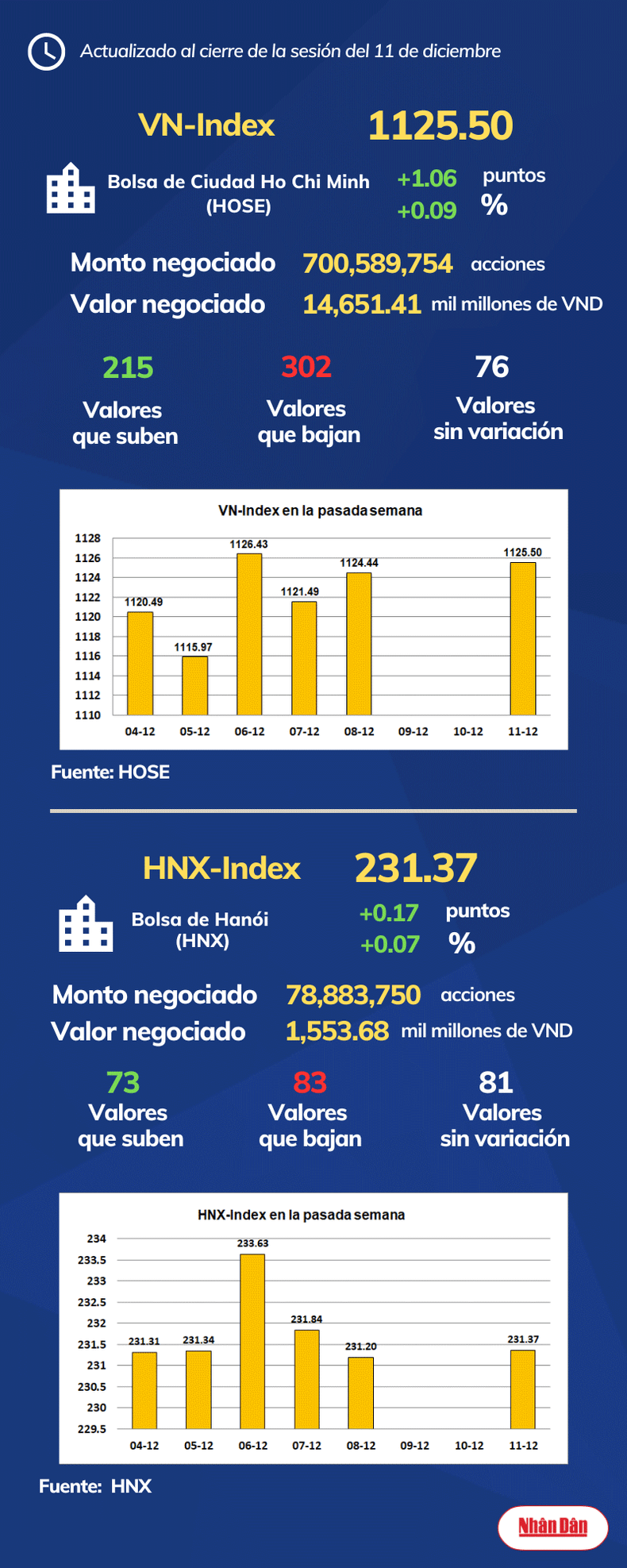 Infografía: Mercado bursátil de Vietnam - 11 de diciembre de 2023