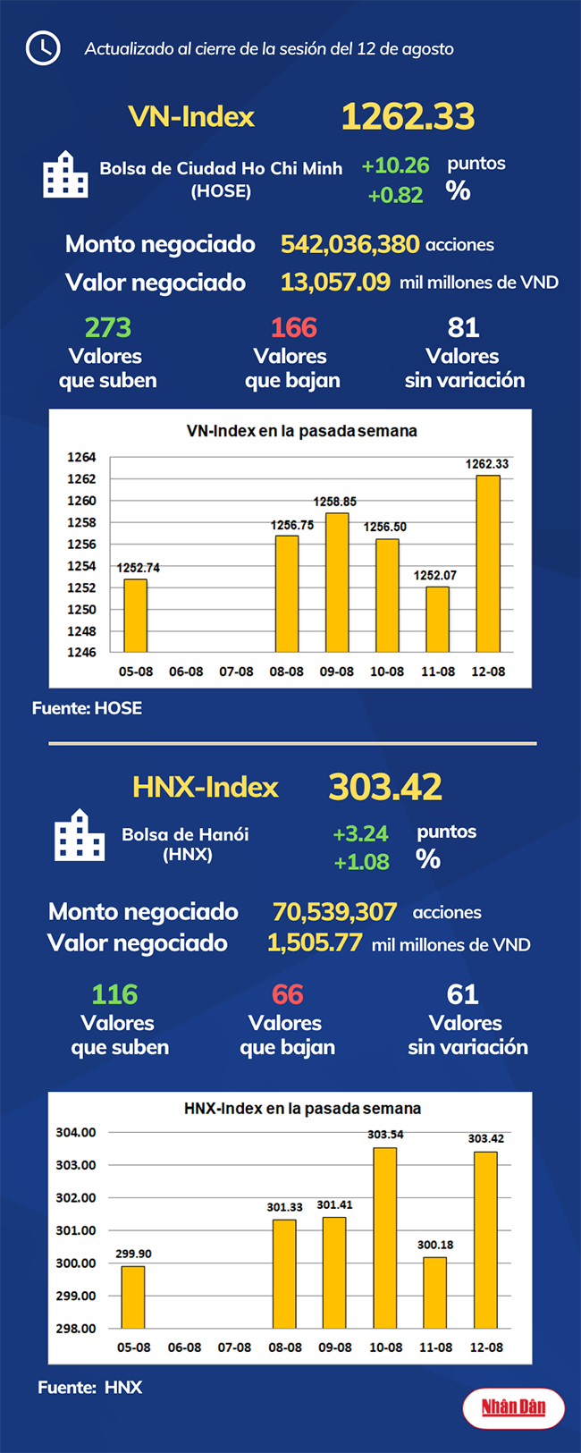 martes, octubre 21, 2025 18:09 Infografía: Mercado bursátil de Vietnam - 21 de octubre de 2025 Al cierre de la sesión del 21 de octubre de 2025, la Bolsa de Ciudad Ho Chi Minh, en Vietnam, registró 222 valores que subieron, 140 que bajaron y 53 sin variación, mientras en Hanói las cifras marcaron 92, 80 y 132.