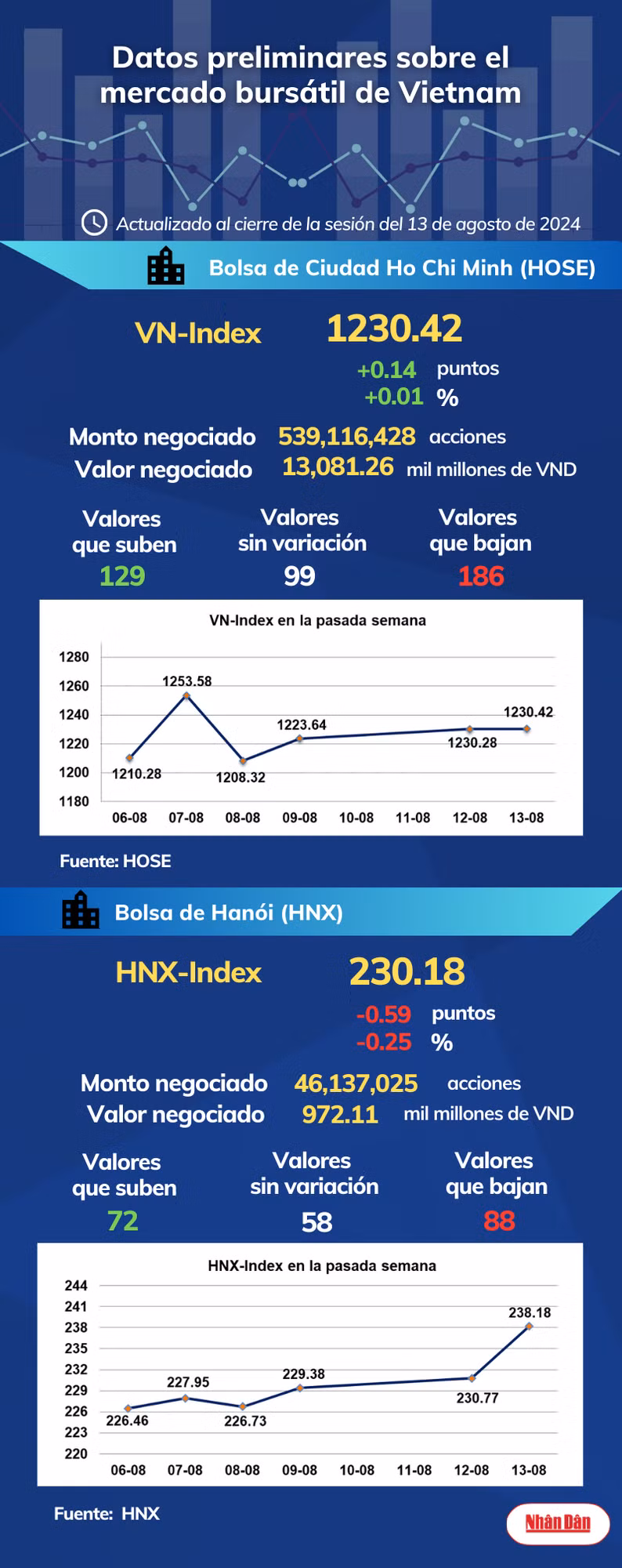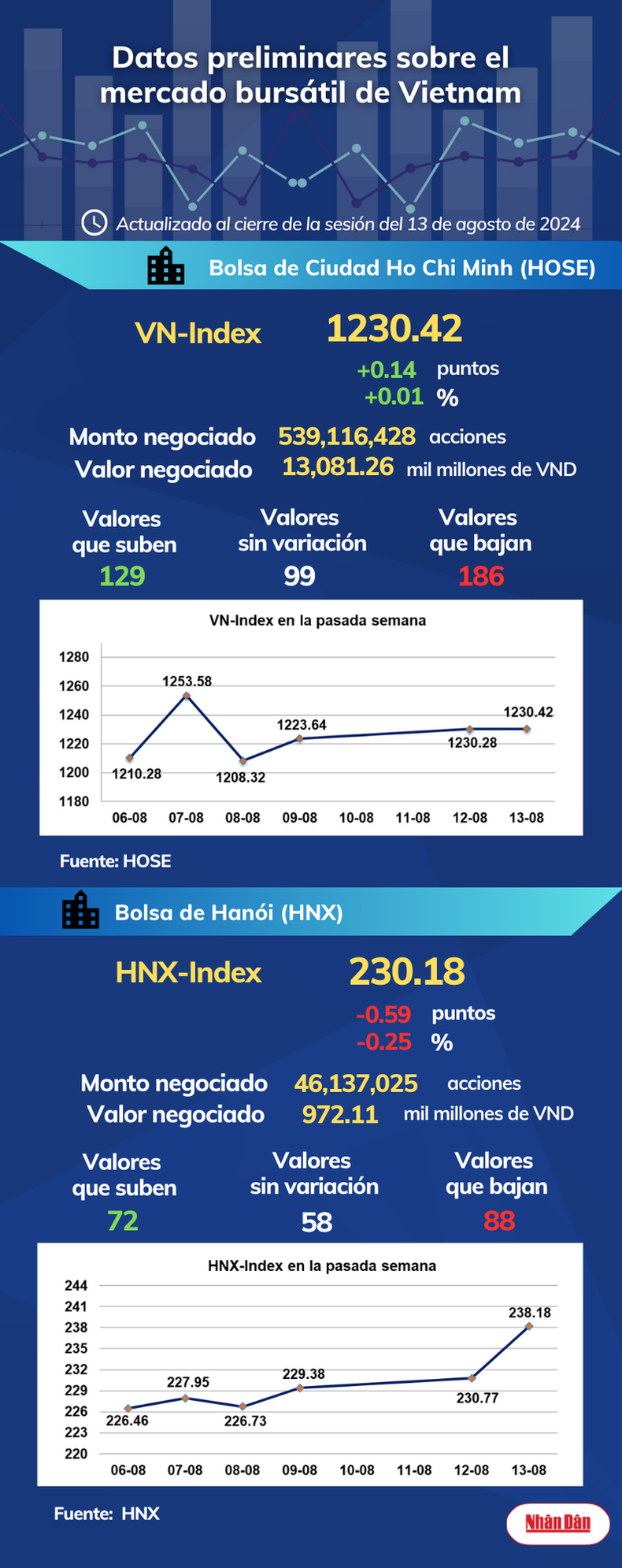Infografía: Mercado bursátil de Vietnam - 13de agosto de 2024