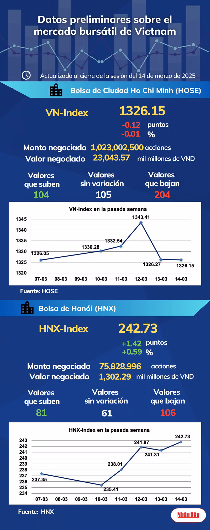 Infografía: Mercado bursátil de Vietnam - 14 de marzo de 2025