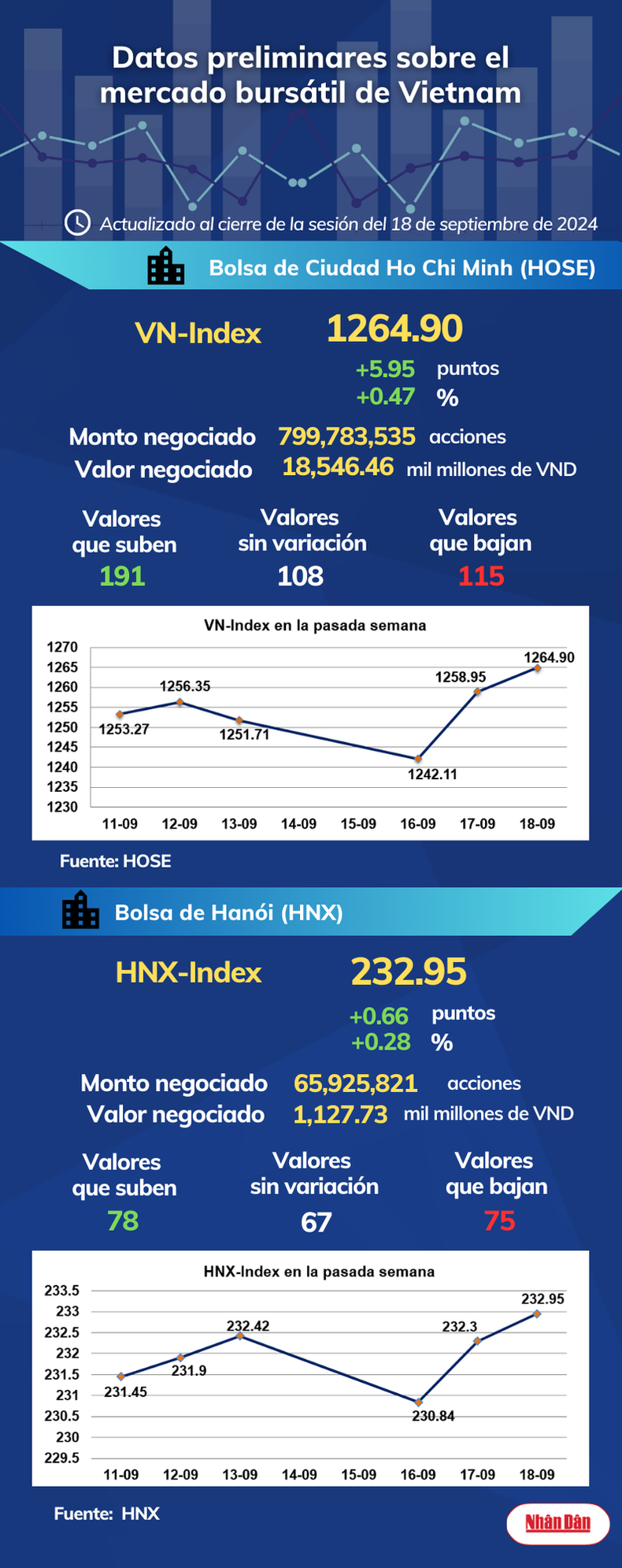 Infografía: Mercado bursátil de Vietnam - 18 de septiembre de 2024