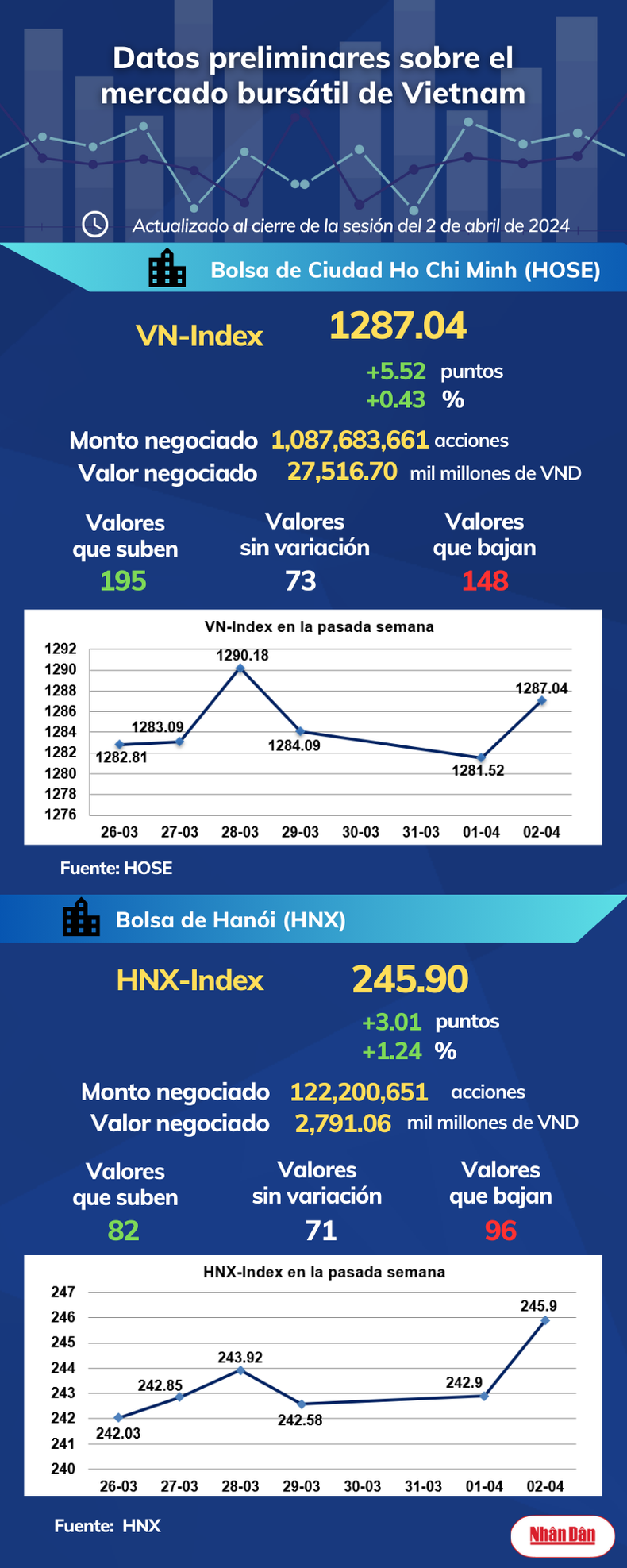 Infografía: Mercado bursátil de Vietnam - 2 de abril de 2024