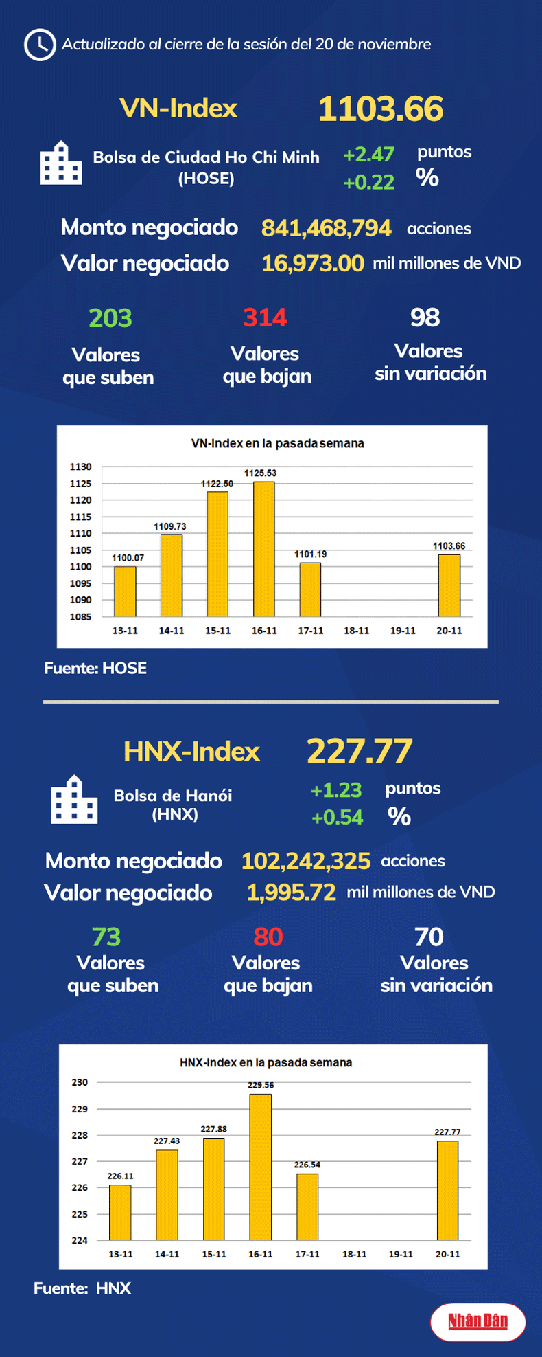 Infografía: Mercado bursátil de Vietnam - 20 de noviembre de 2023