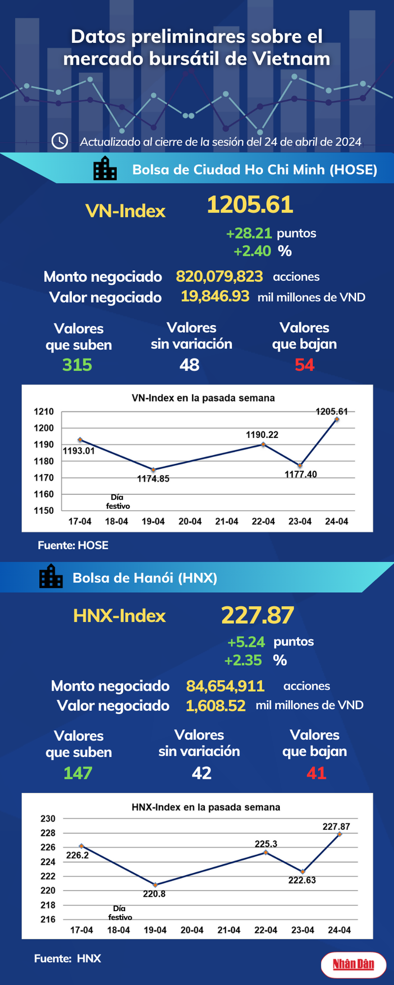 Infografía: Mercado bursátil de Vietnam - 24 de abril de 2024