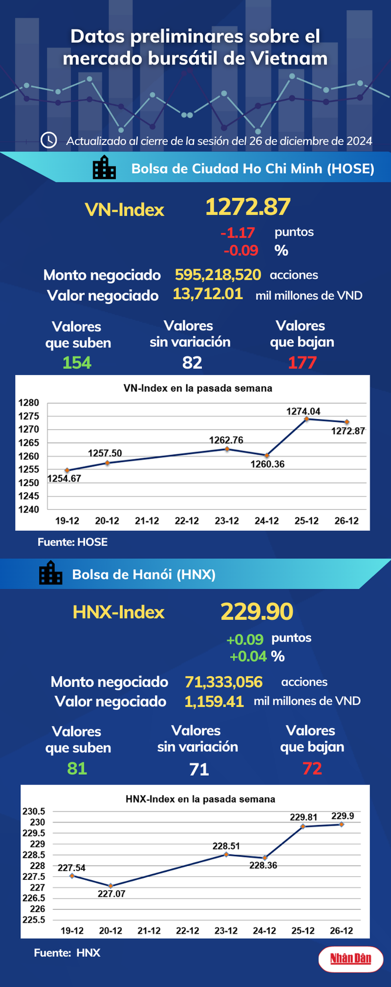 Infografía: Mercado bursátil de Vietnam - 26 de diciembre de 2024