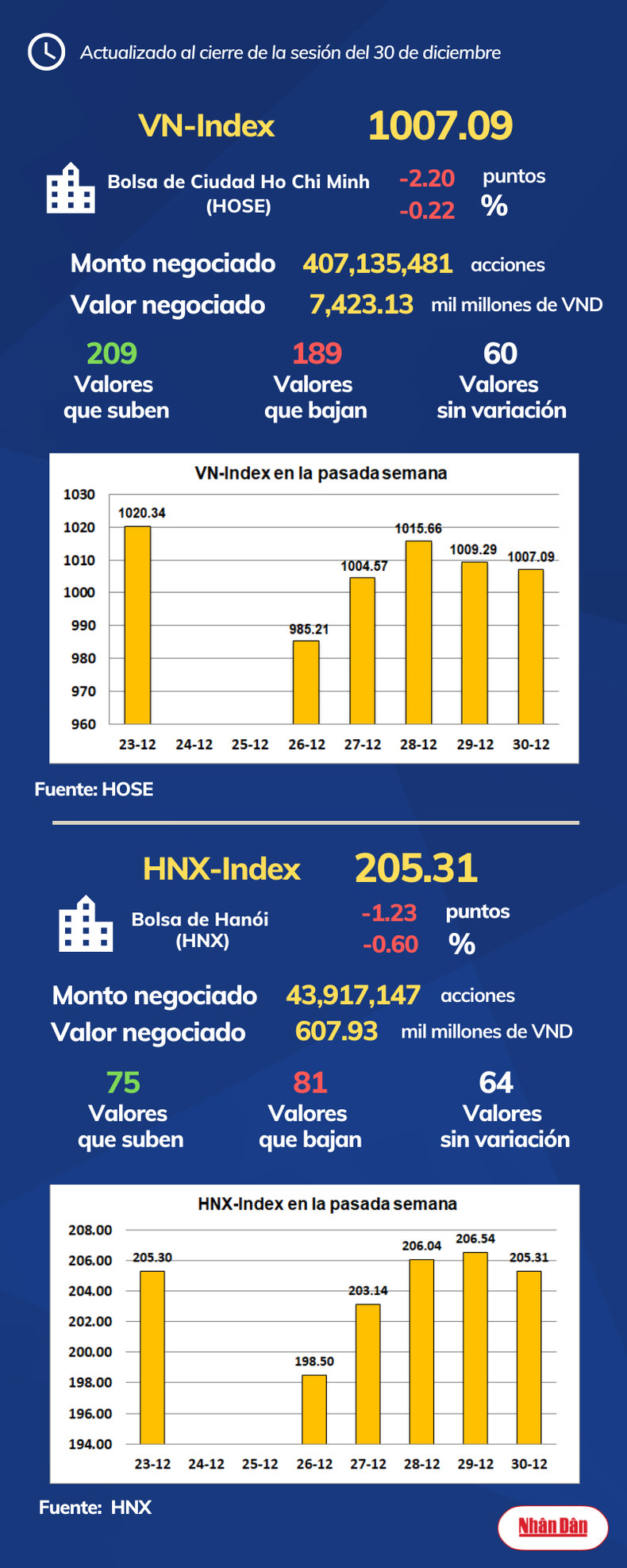 Infografía: Mercado bursátil de Vietnam - 30 de diciembre de 2022