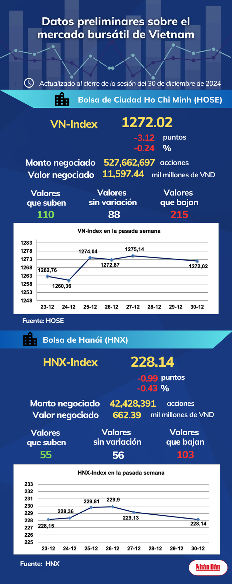 Infografía: Mercado bursátil de Vietnam - 30 de diciembre de 2024