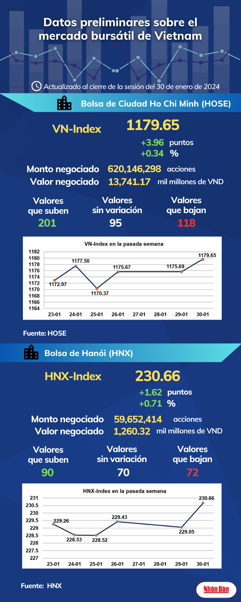 Infografía: Mercado bursátil de Vietnam - 30 de enero de 2024