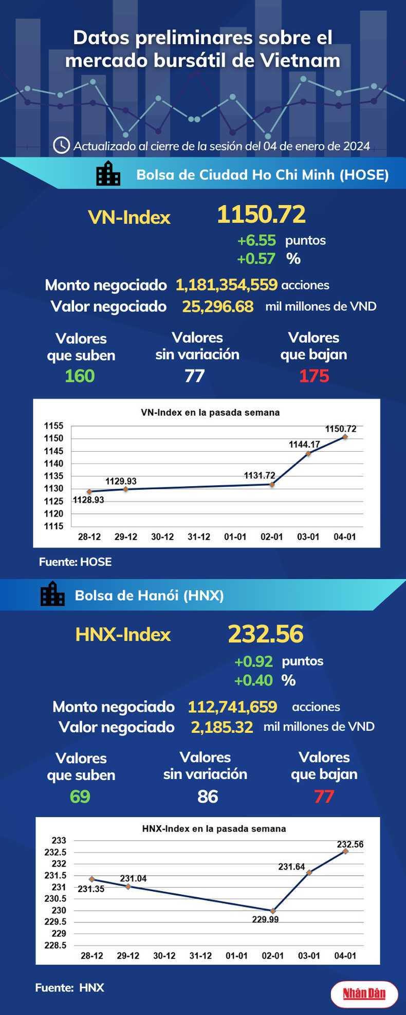Infografía: Mercado bursátil de Vietnam - 4 de enero de 2024