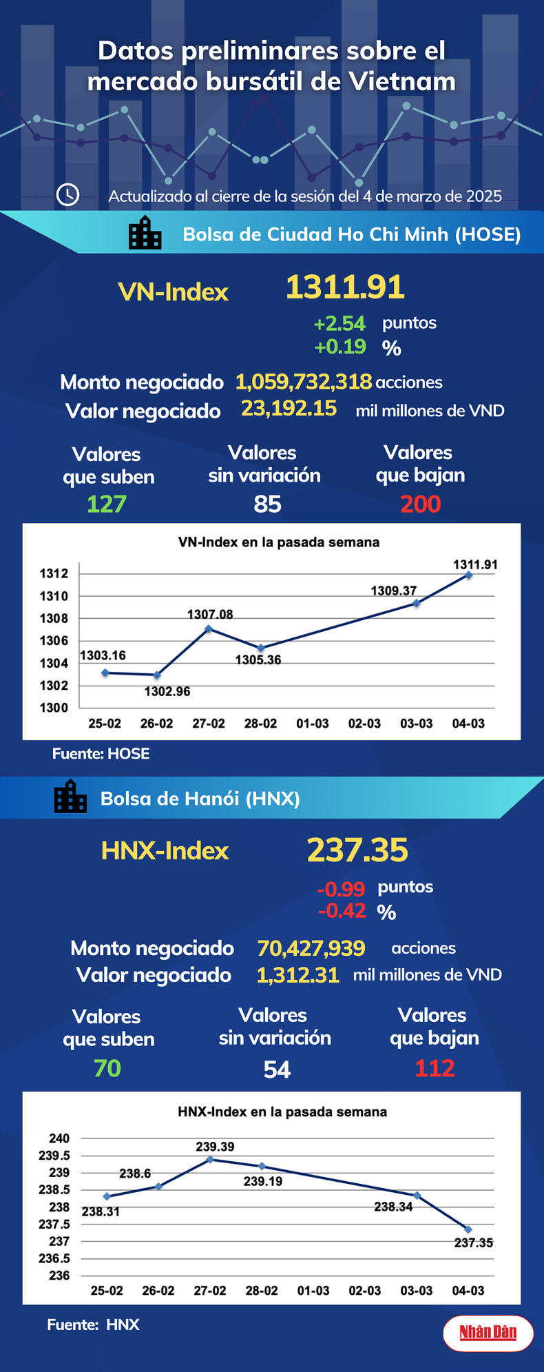 Infografía: Mercado bursátil de Vietnam - 4 de marzo de 2025