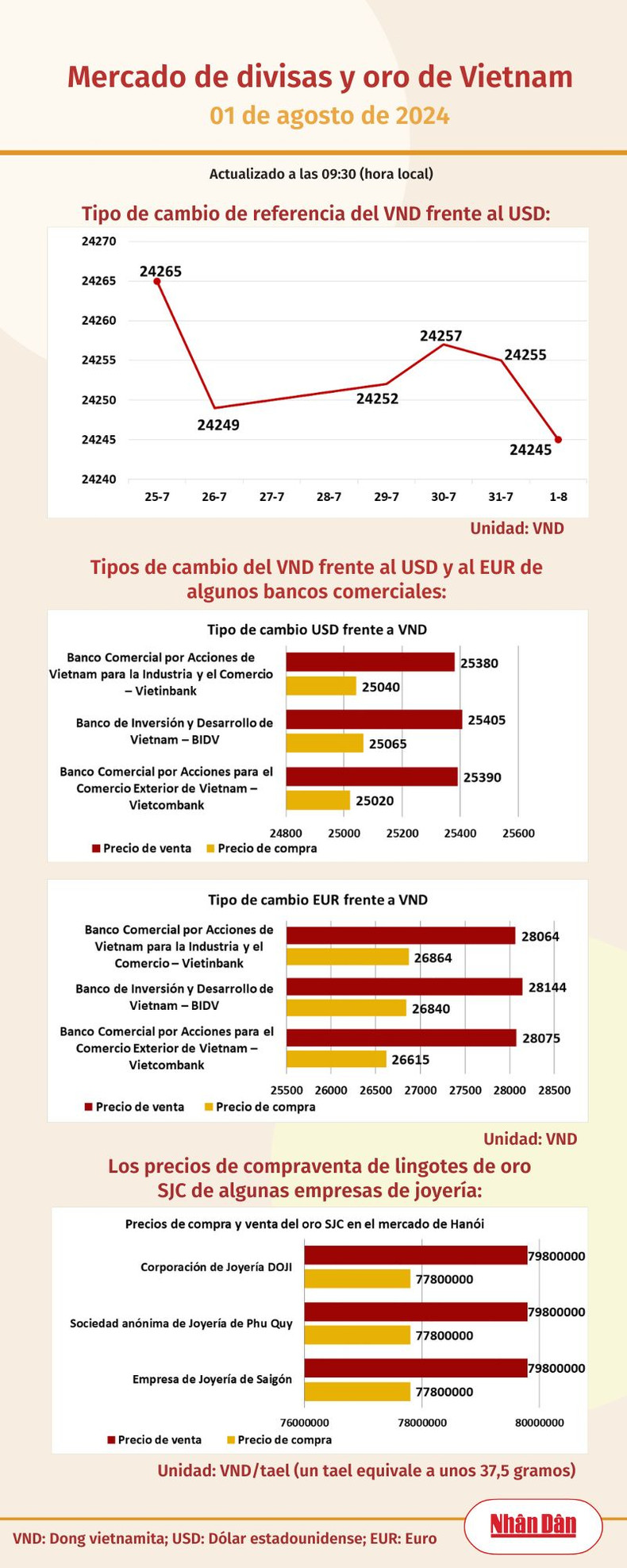 Infografía: Mercado de divisas y oro de Vietnam - 01 de agosto de 2024