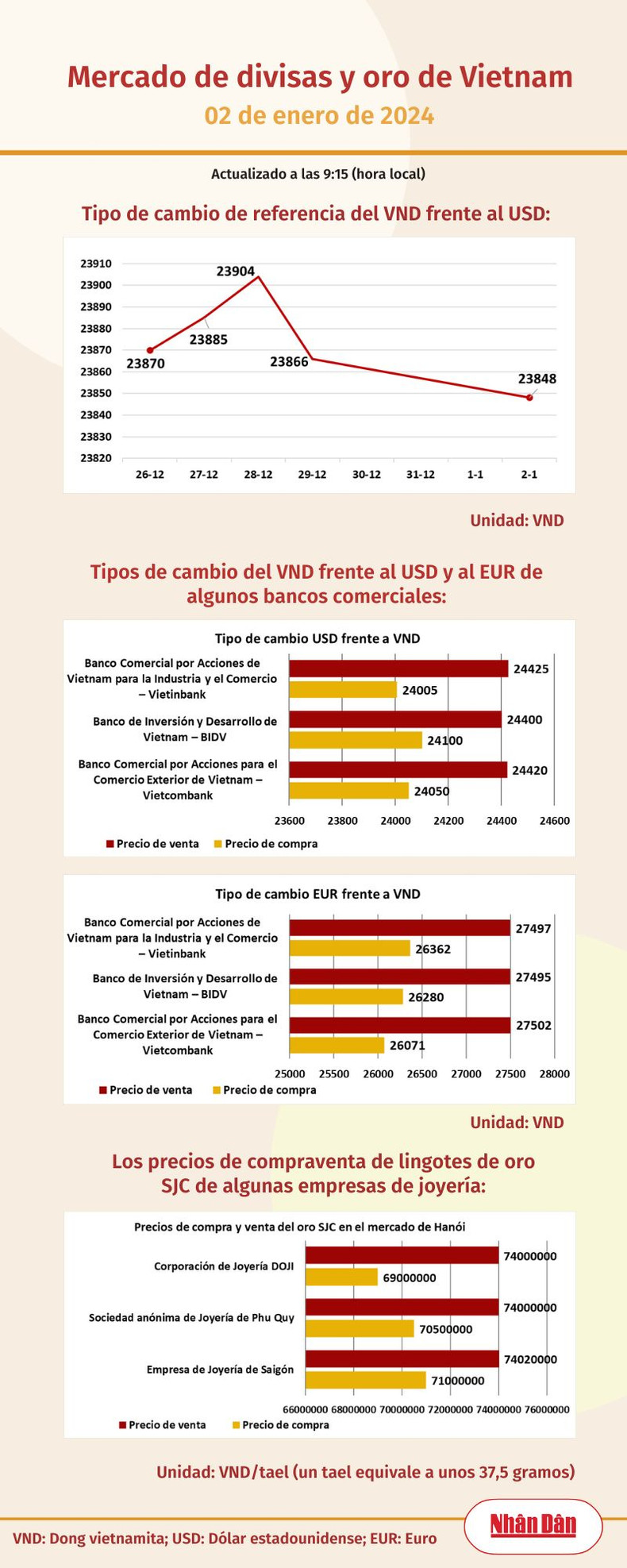Infografía: Mercado de divisas y oro de Vietnam -02 de enero de 2024