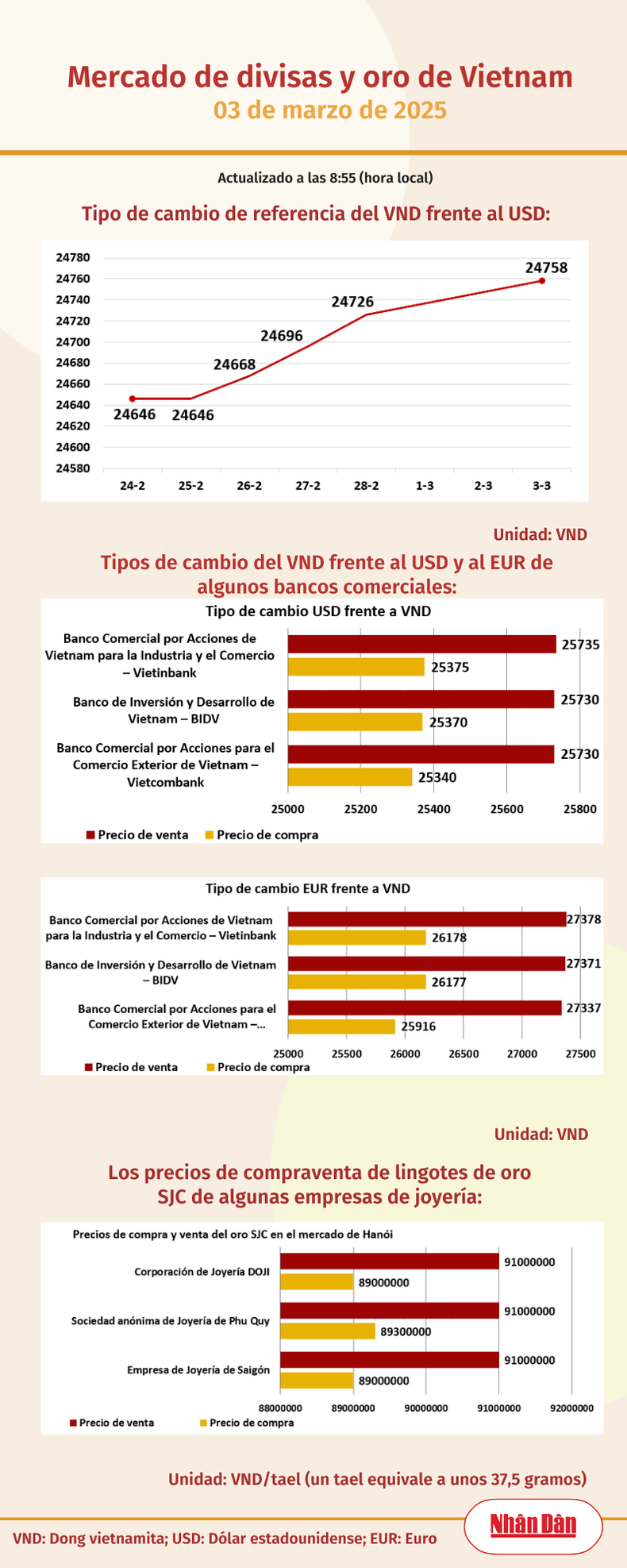 Infografía: Mercado de divisas y oro de Vietnam - 03 de marzo de 2025