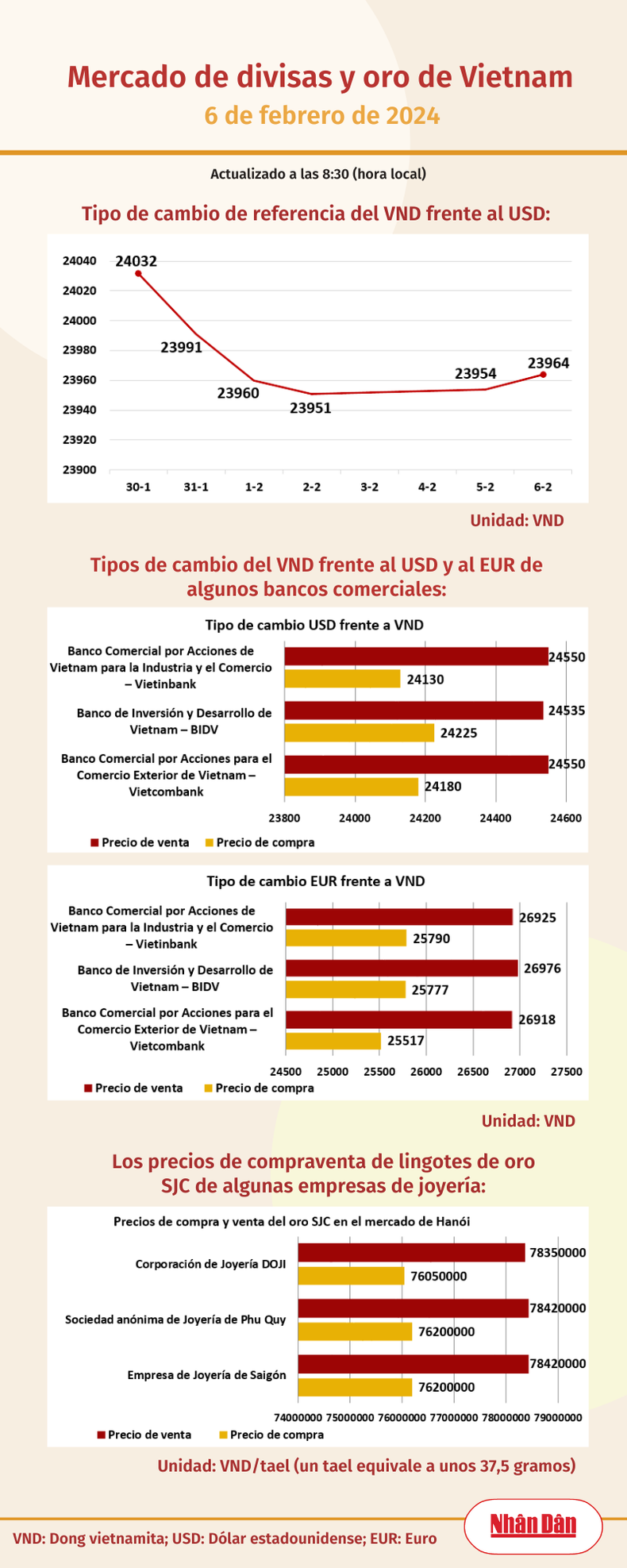 Infografía: Mercado de divisas y oro de Vietnam - 06 de febrero de 2024
