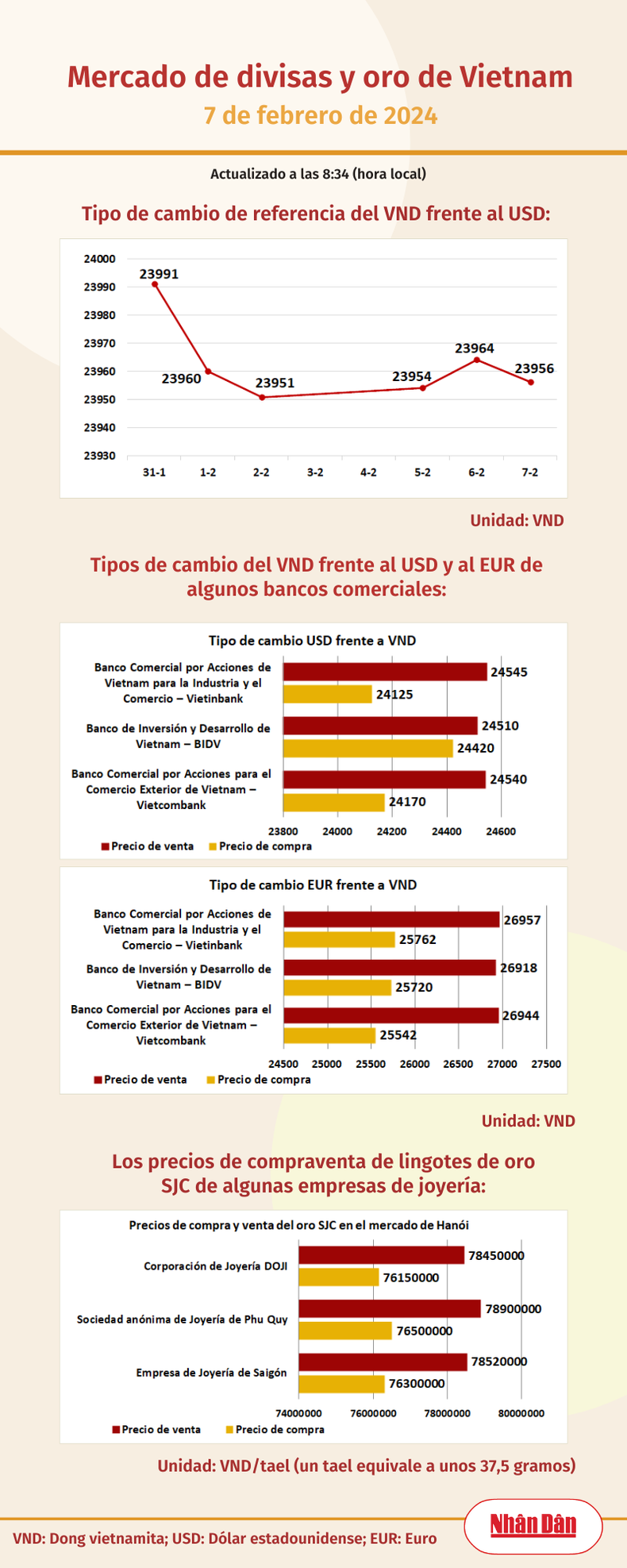 Infografía: Mercado de divisas y oro de Vietnam - 07 de febrero de 2024