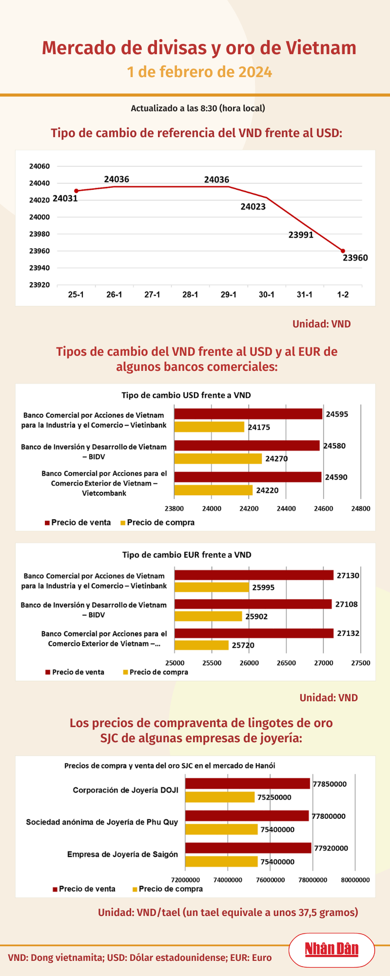 Infografía: Mercado de divisas y oro de Vietnam - 1 de febrero de 2024