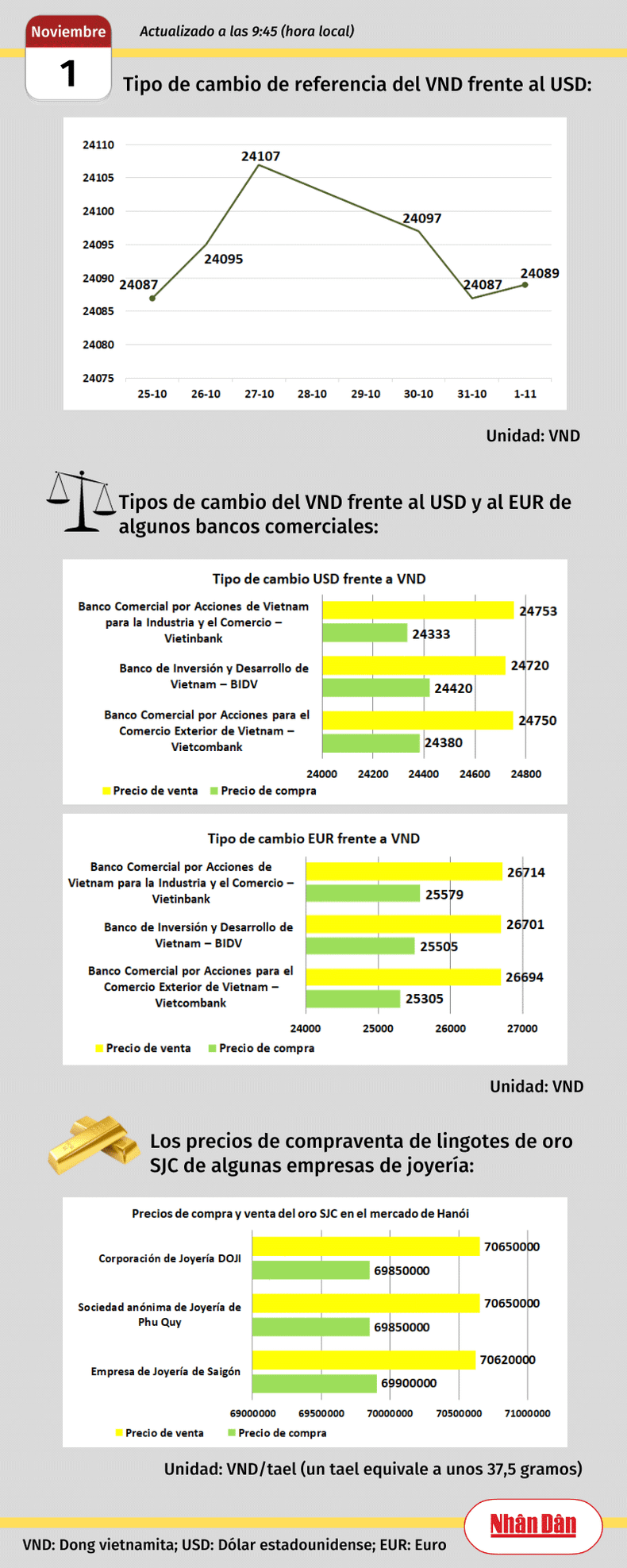 Infografía: Mercado de divisas y oro de Vietnam - 1 de noviembre de 2023