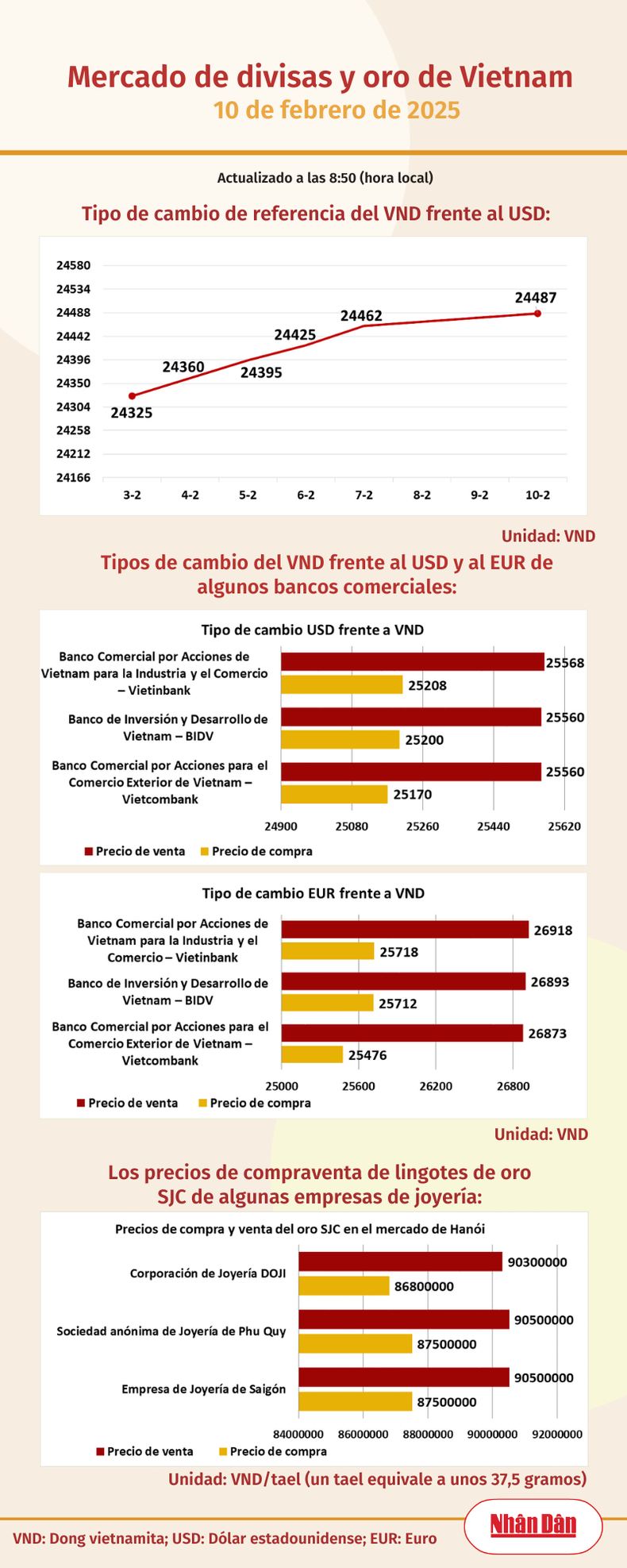 Infografía: Mercado de divisas y oro de Vietnam - 10 de febrero de 2025