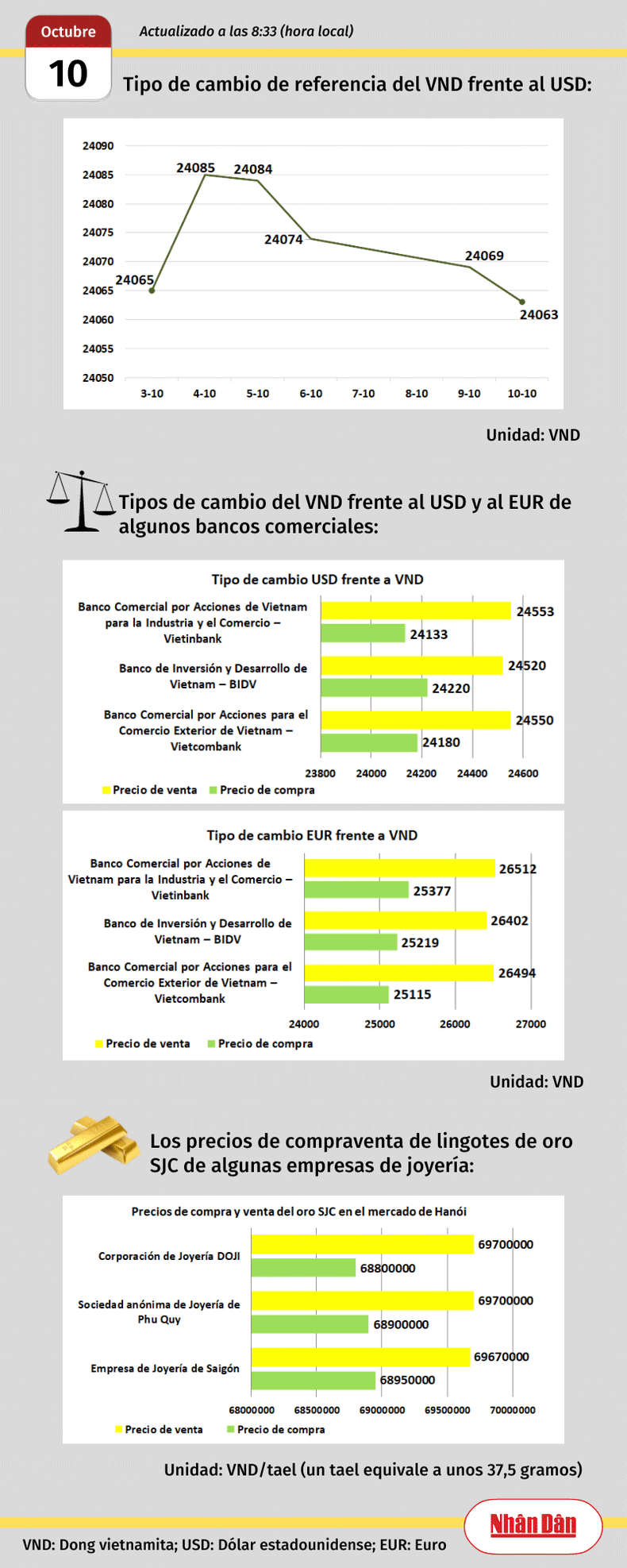 Infografía: Mercado de divisas y oro de Vietnam - 10 de octubre de 2023