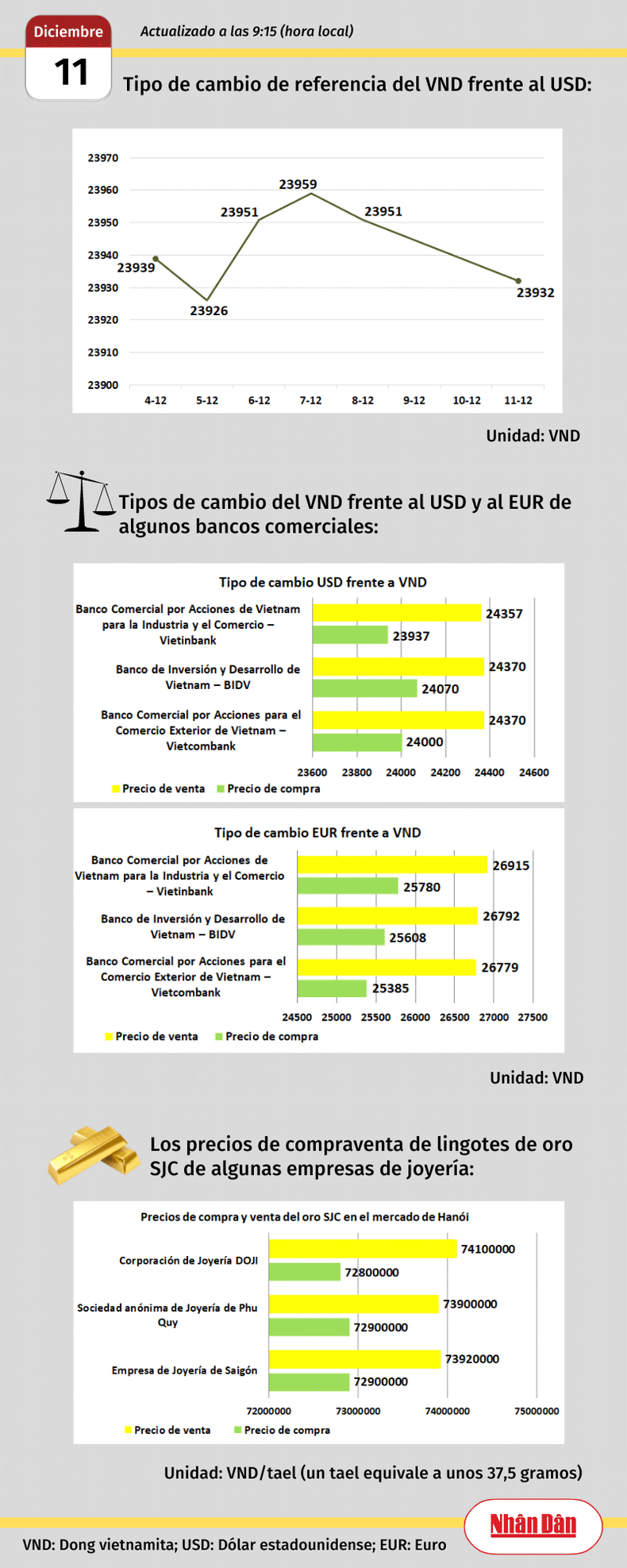 Infografía: Mercado de divisas y oro de Vietnam - 11 de diciembre de 2023