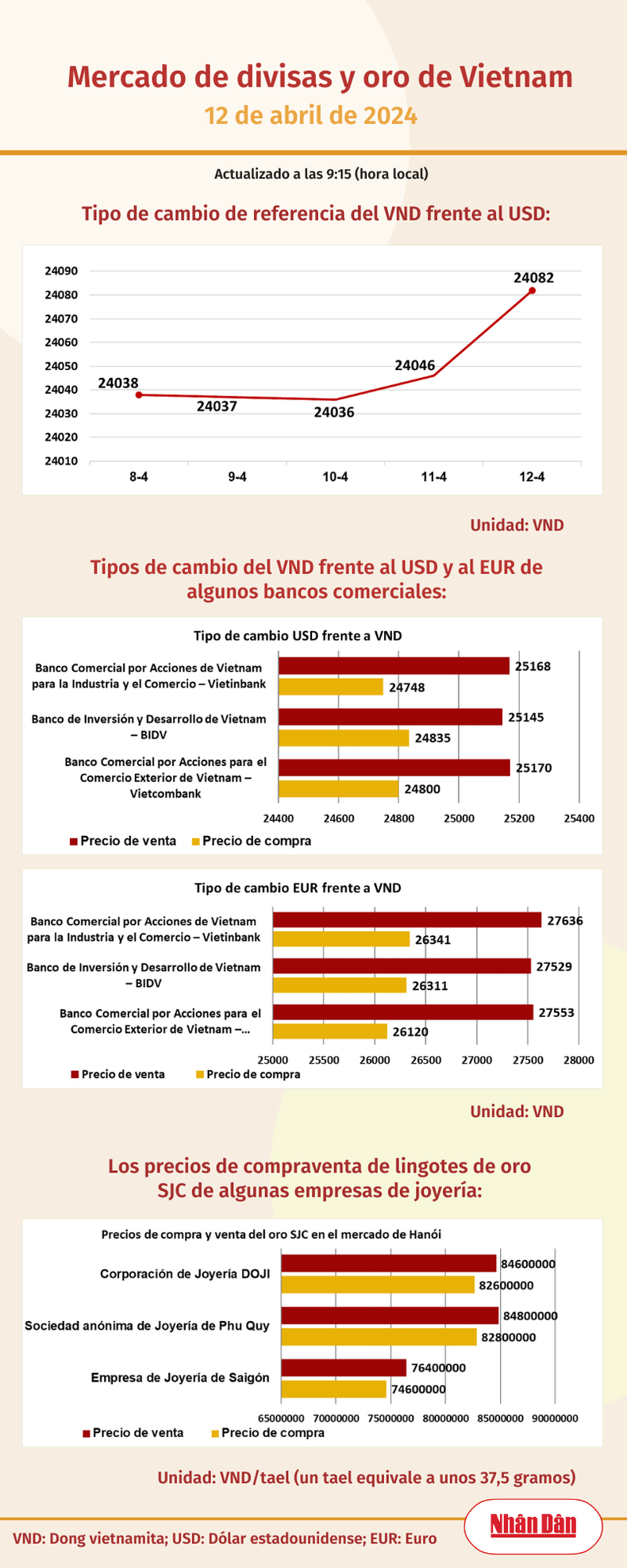 Infografía: Mercado de divisas y oro de Vietnam - 12 de abril de 2024