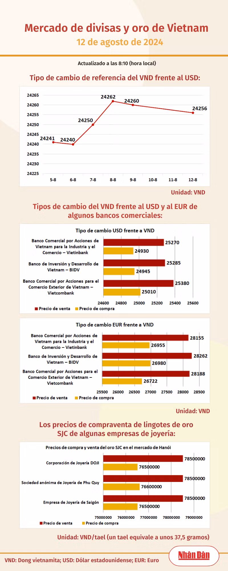 Infografía: Mercado de divisas y oro de Vietnam - 12 de agosto de 2024