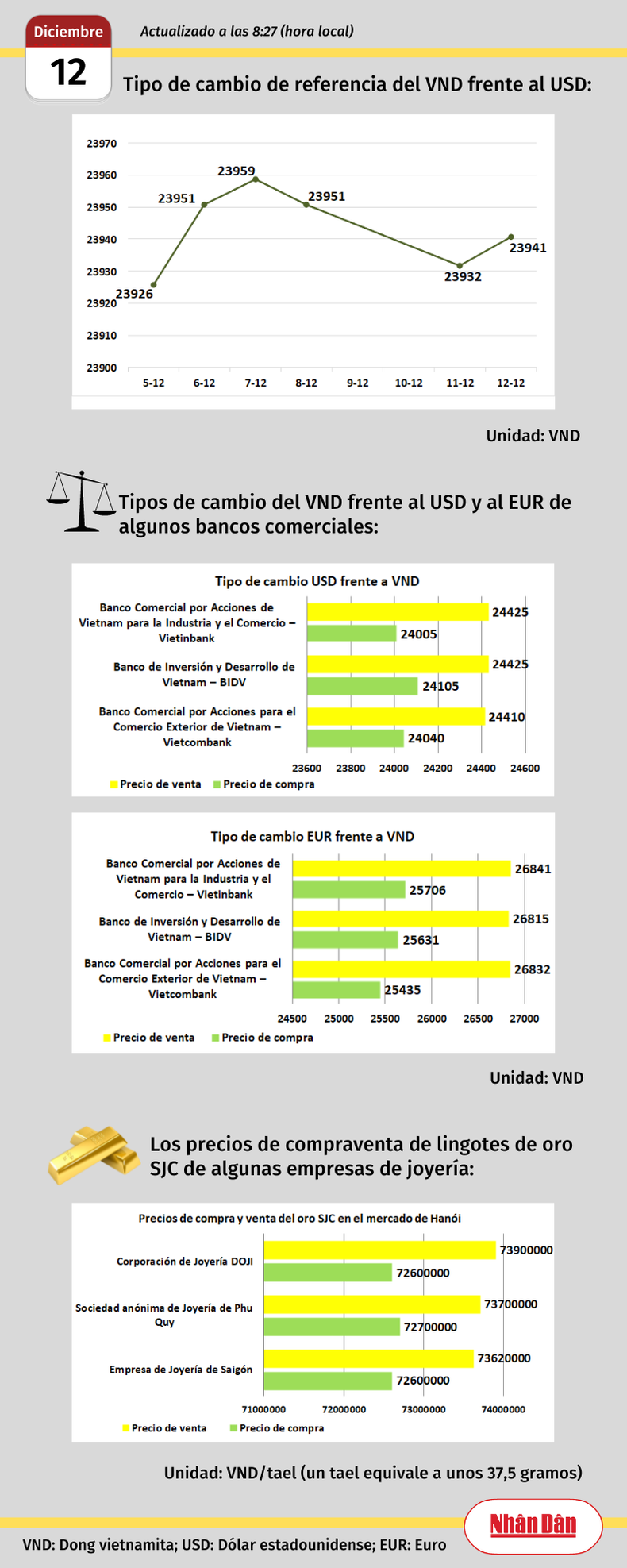 Infografía: Mercado de divisas y oro de Vietnam - 12 de diciembre de 2023