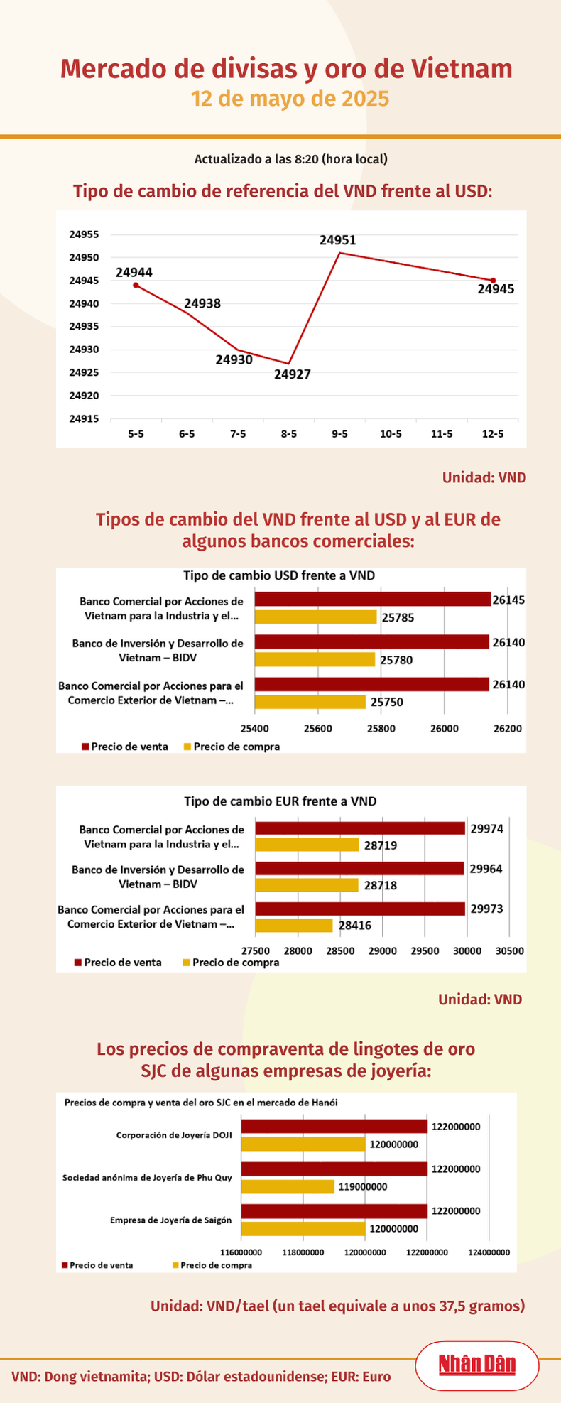martes, octubre 21, 2025 09:08 Infografía: Mercado de divisas y oro de Vietnam - 21 de octubre de 2025 El dólar estadounidense se cotiza hoy en 25099 dongs vietnamitas (VND) (Referencia del Banco Estatal de Vietnam)
