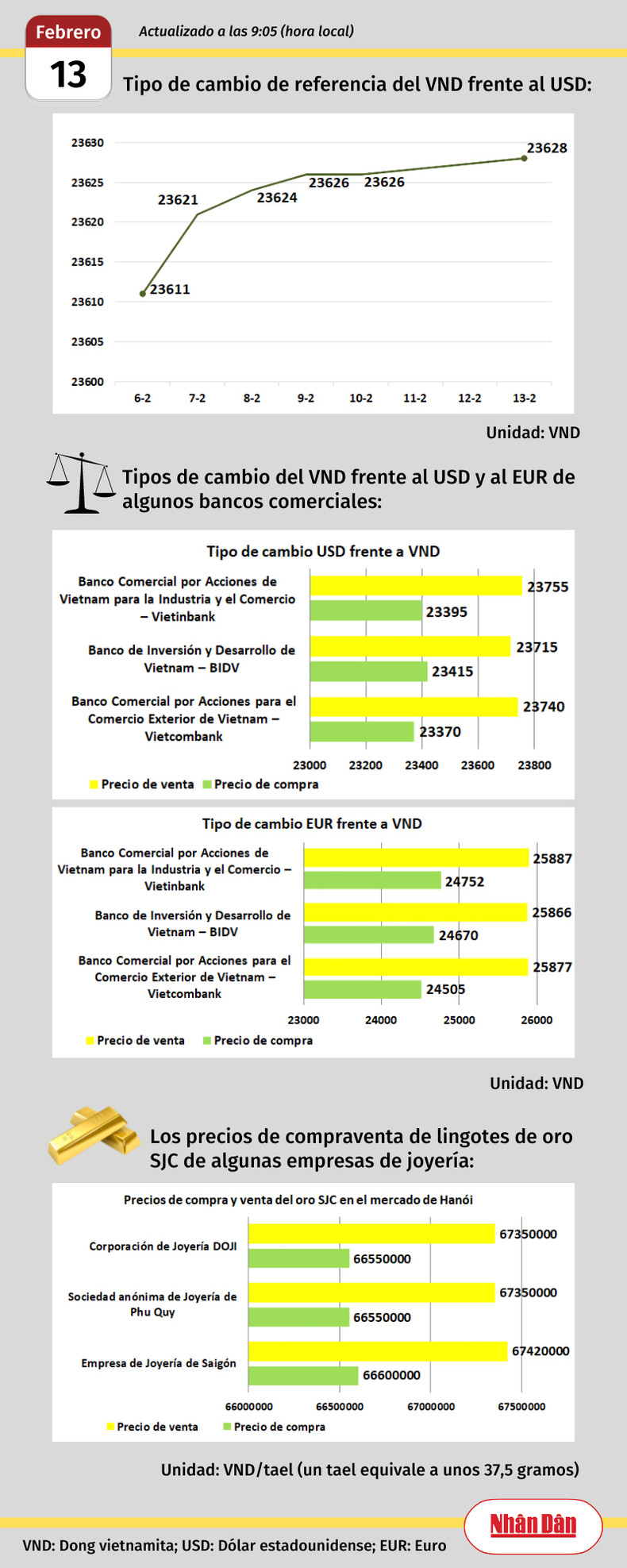 Infografía: Mercado de divisas y oro de Vietnam - 13 de febrero de 2023