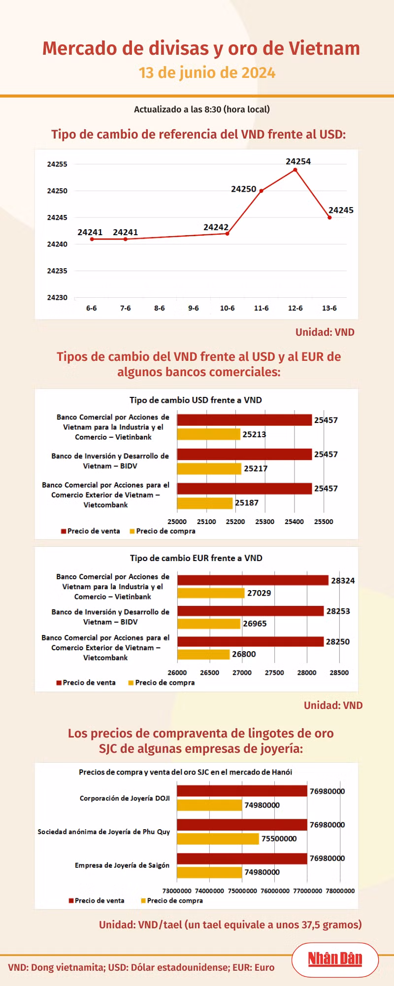 Infografía: Mercado de divisas y oro de Vietnam - 13 de junio de 2024