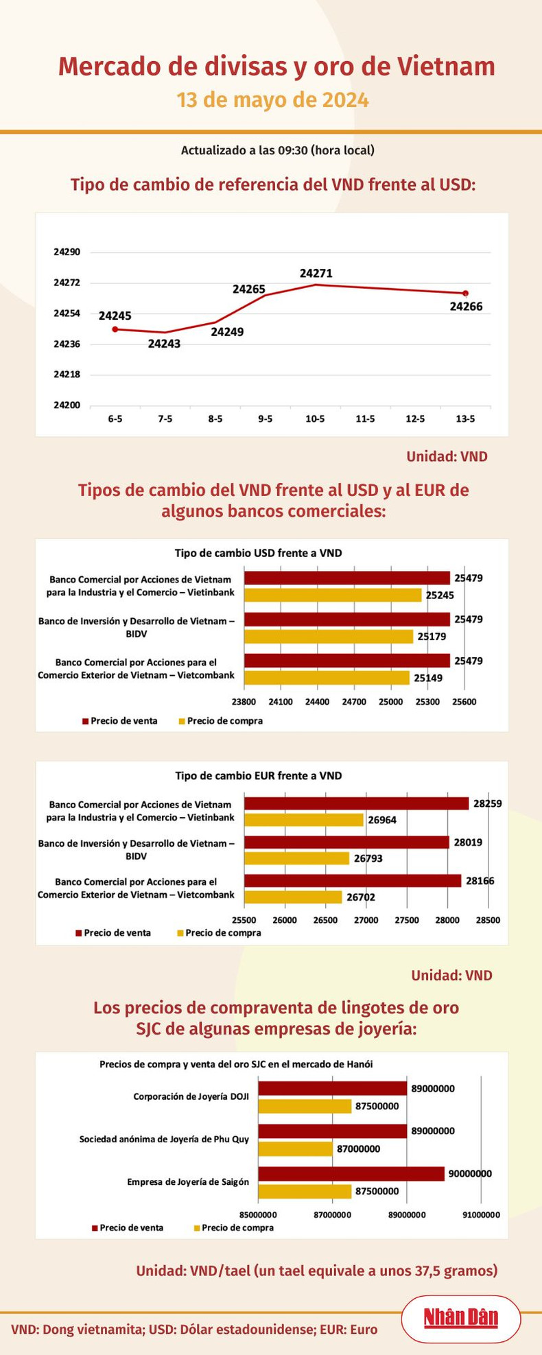 Infografía: Mercado de divisas y oro de Vietnam - 13 de mayo de 2024