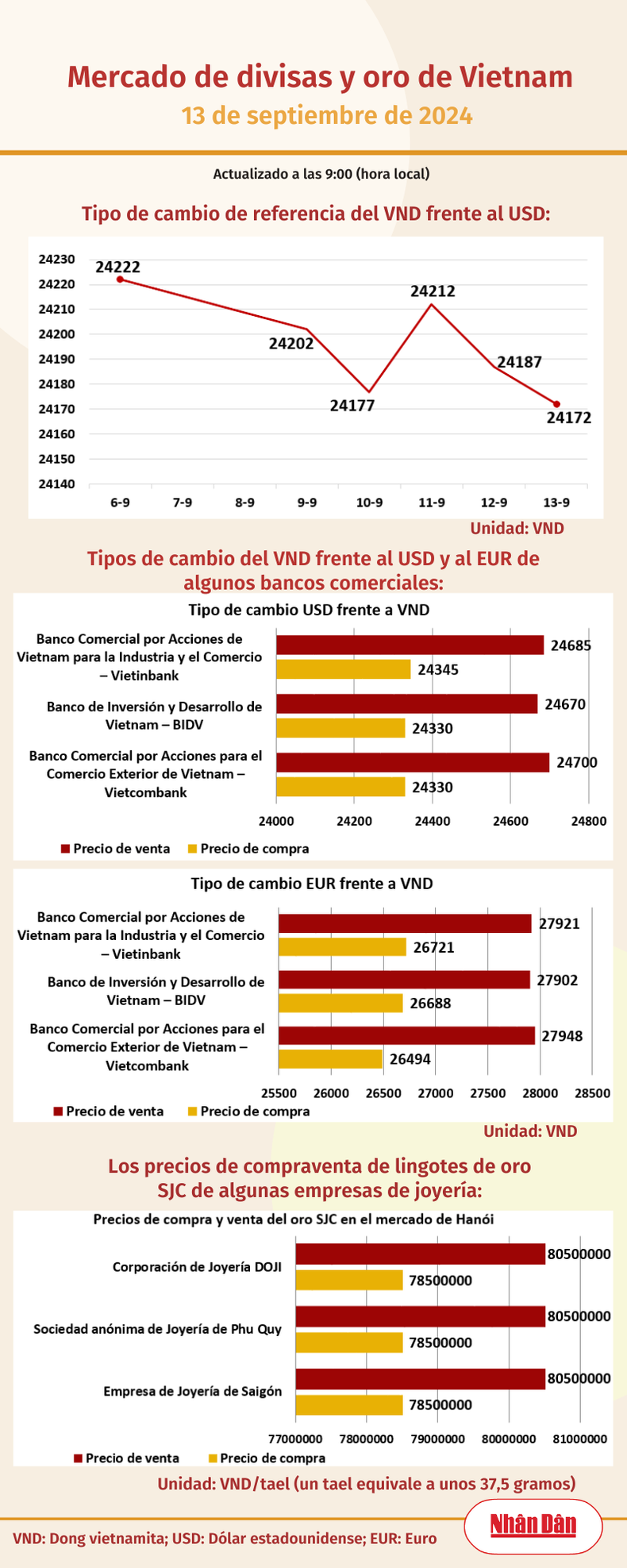 Infografía: Mercado de divisas y oro de Vietnam - 13 de septiembre de 2024