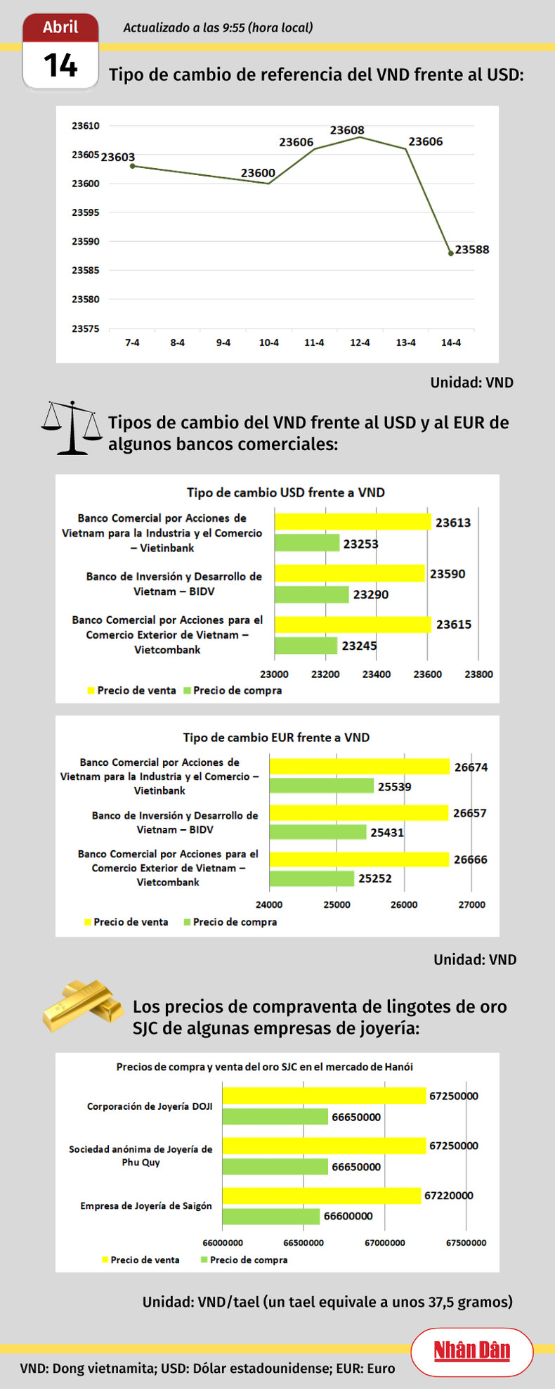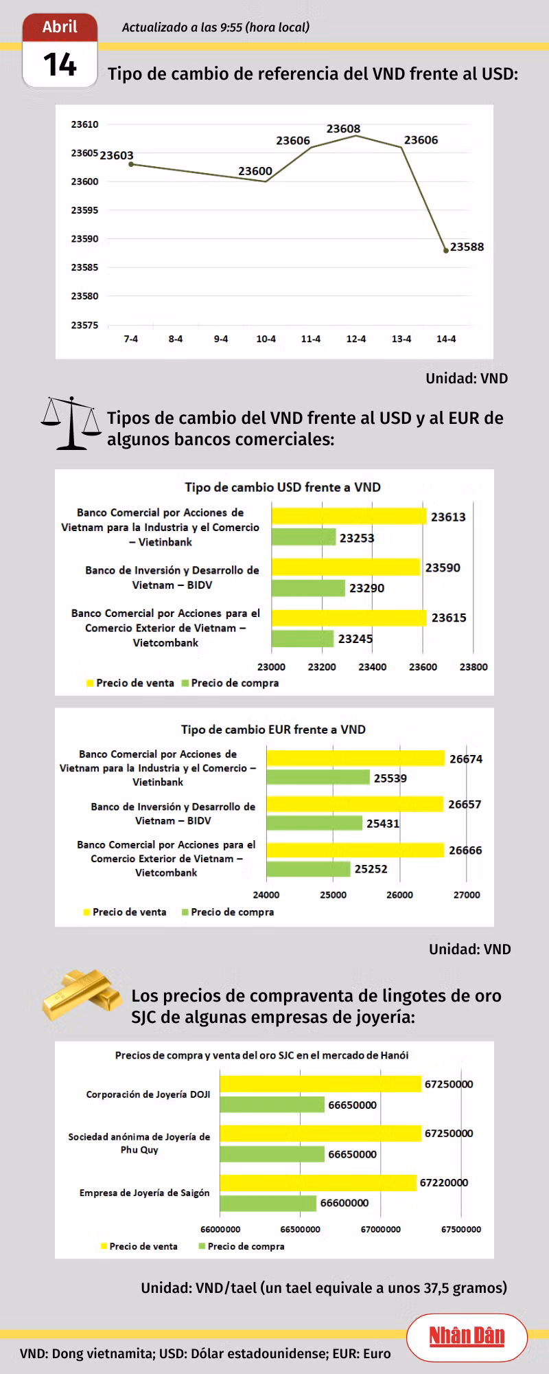 Infografía: Mercado de divisas y oro de Vietnam - 14 de abril de 2023