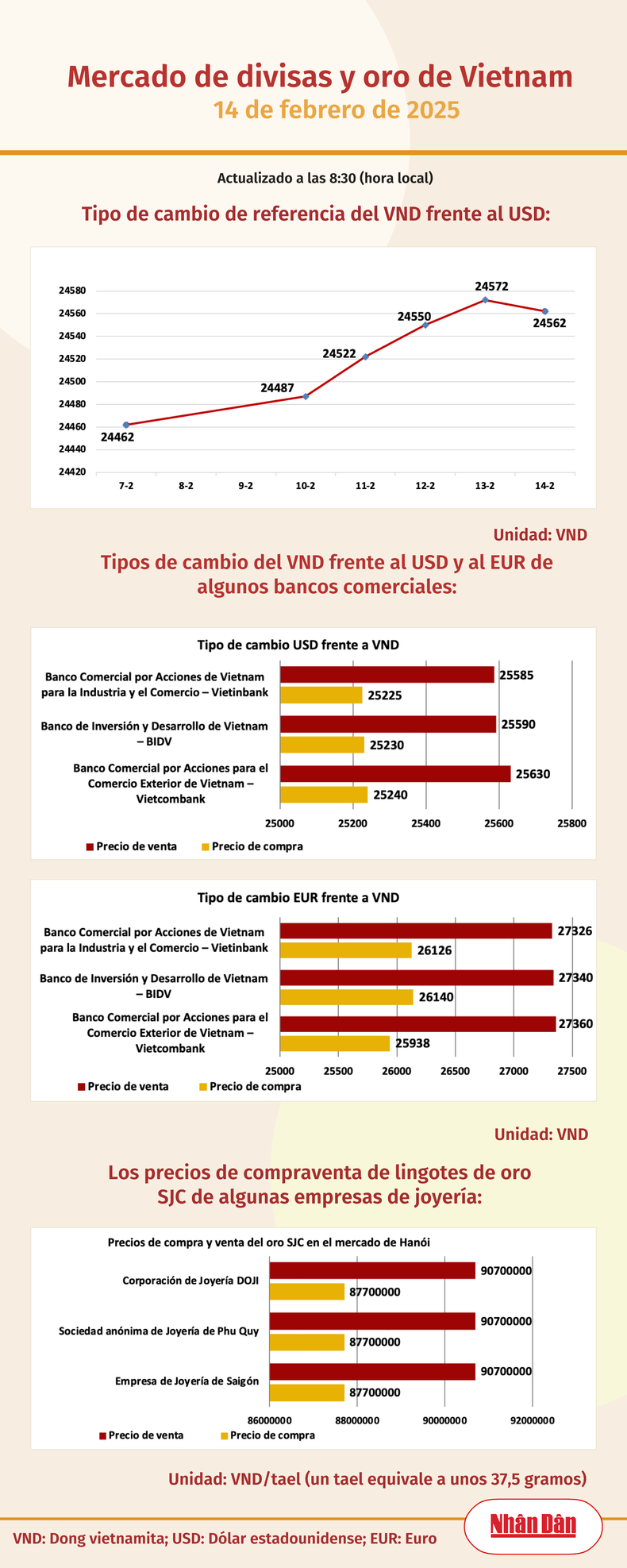 Infografía: Mercado de divisas y oro de Vietnam - 14 de febrero de 2025