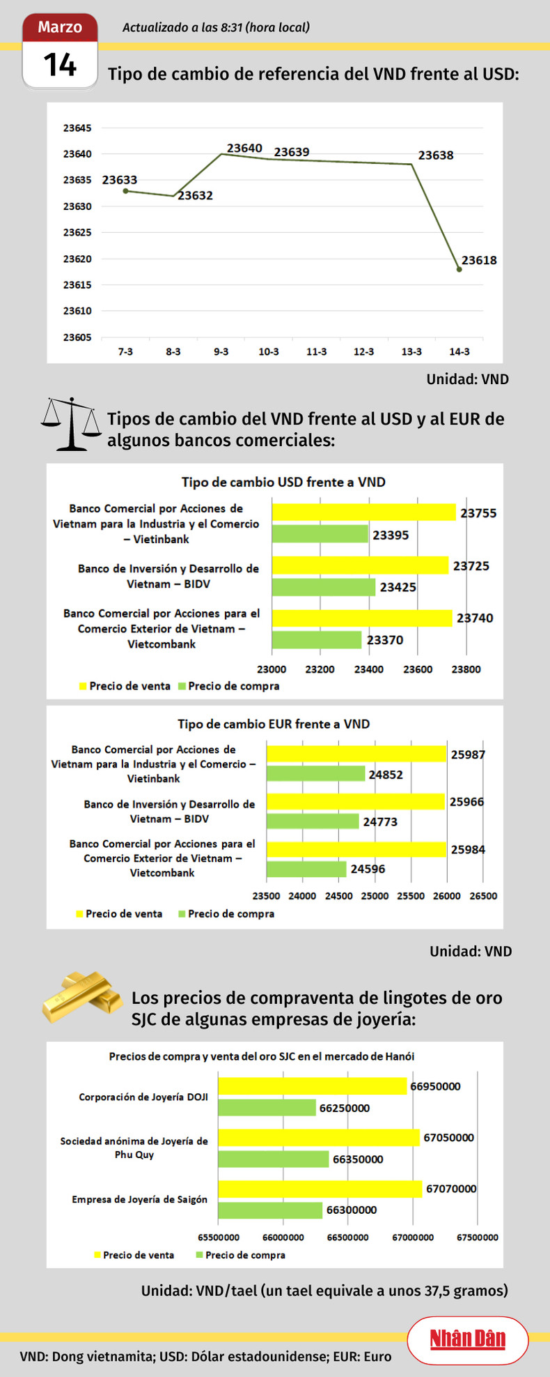 Infografía: Mercado de divisas y oro de Vietnam - 14 de marzo de 2023