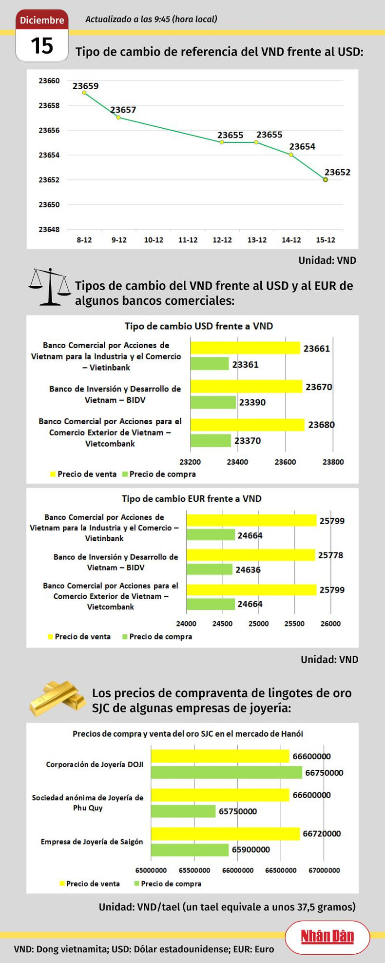 Infografía: Mercado de divisas y oro de Vietnam - 15 de diciembre de 2022