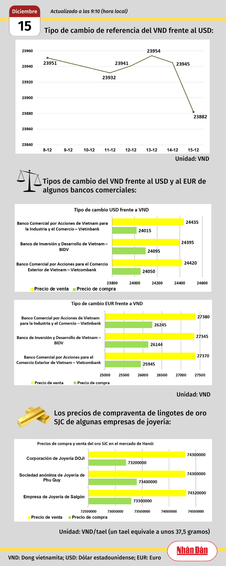 Infografía: Mercado de divisas y oro de Vietnam - 15 de diciembre de 2023
