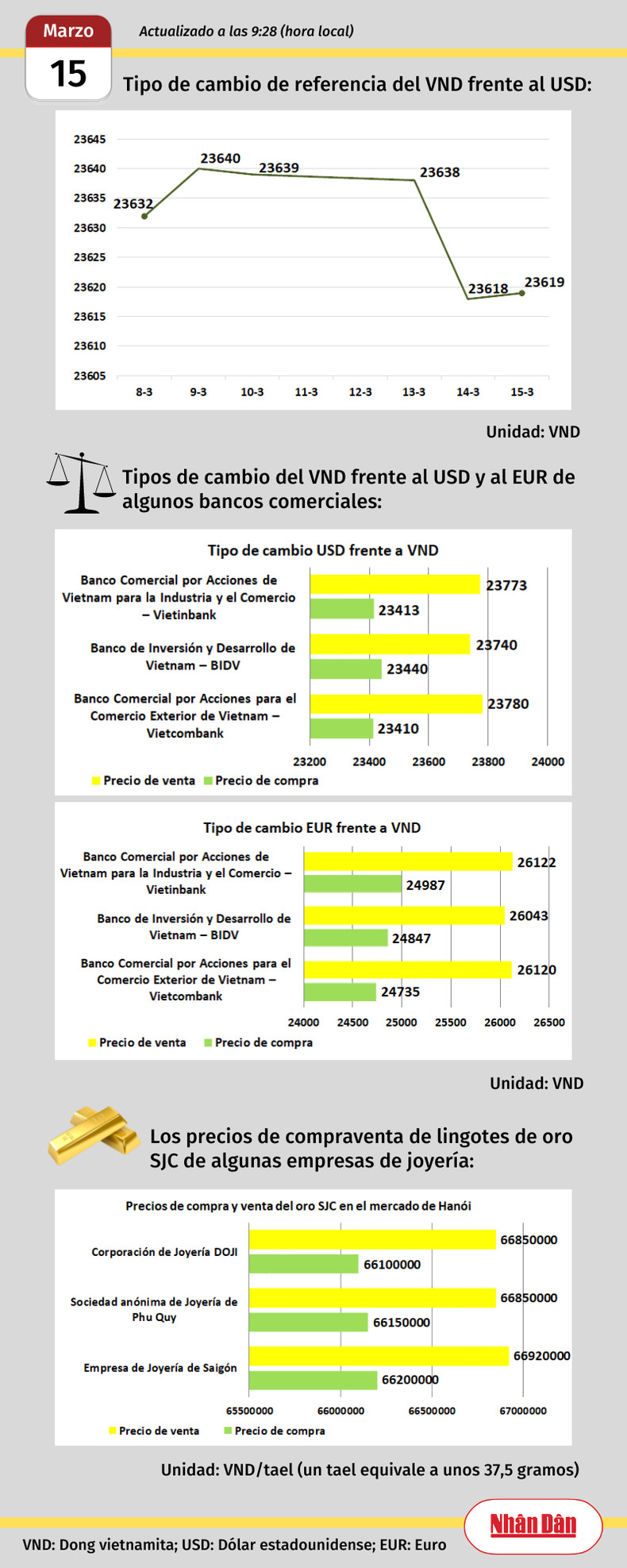 Infografía: Mercado de divisas y oro de Vietnam - 15 de marzo de 2023