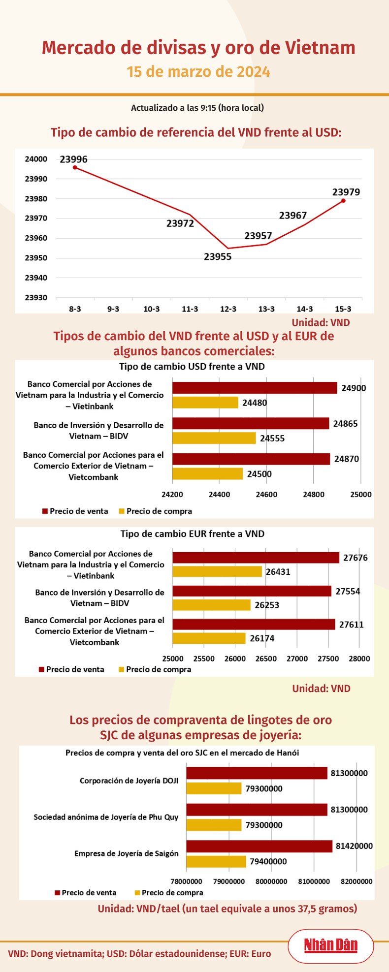 Infografía: Mercado de divisas y oro de Vietnam - 15 de marzo de 2024