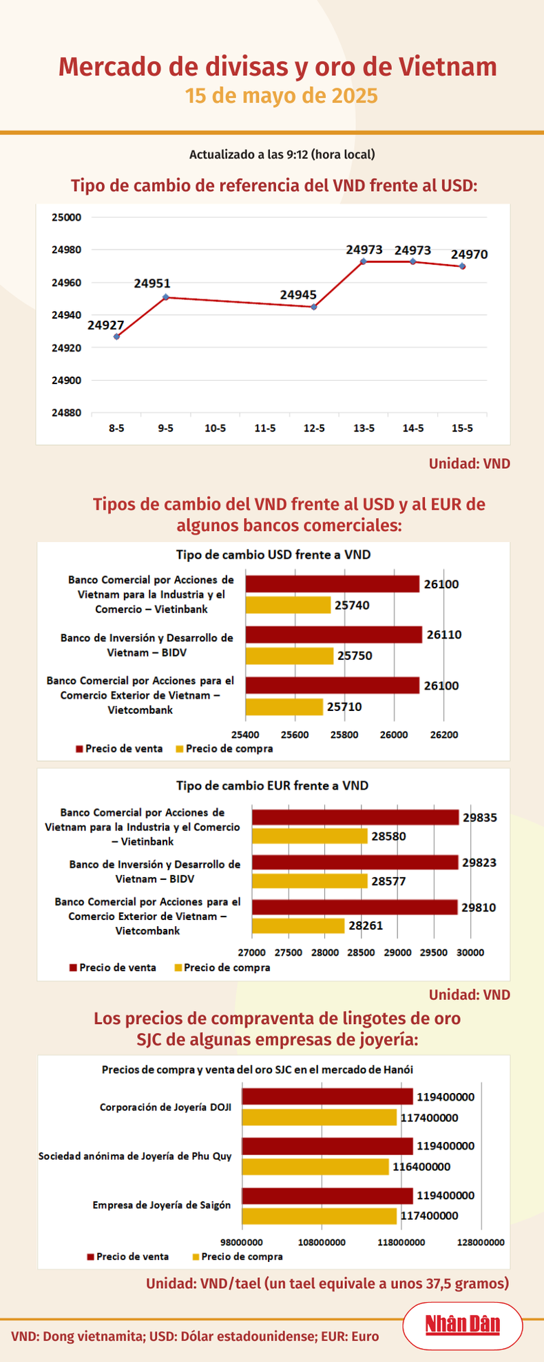 Infografía: Mercado de divisas y oro de Vietnam - 15 de mayo de 2025