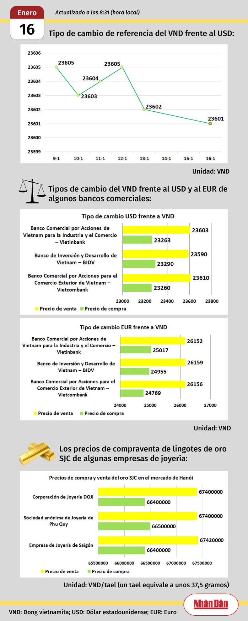 Infografía: Mercado de divisas y oro de Vietnam - 16 de enero de 2023