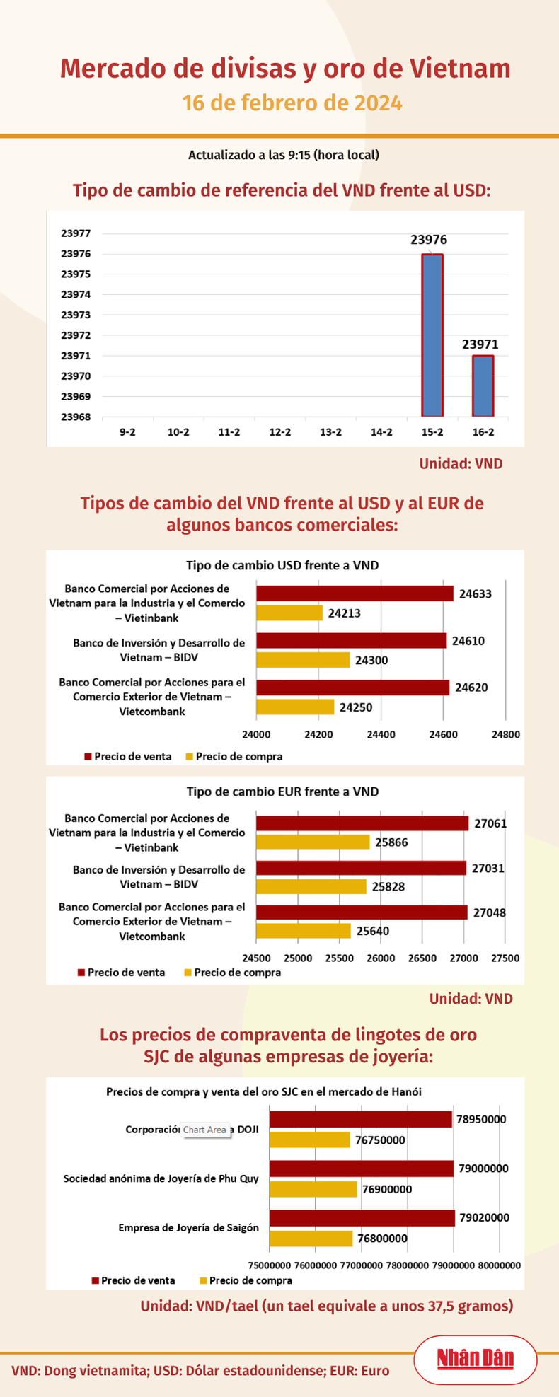 Infografía: Mercado de divisas y oro de Vietnam - 16 de febrero de 2024