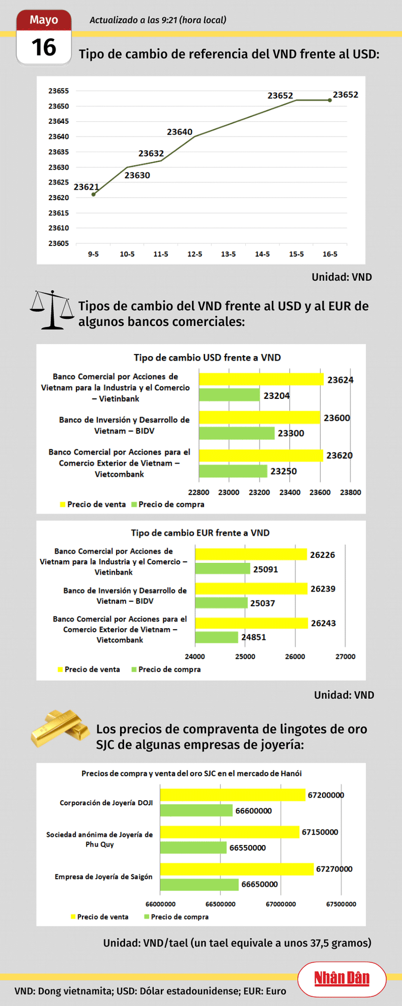 Infografía: Mercado de divisas y oro de Vietnam - 16 de mayo de 2023