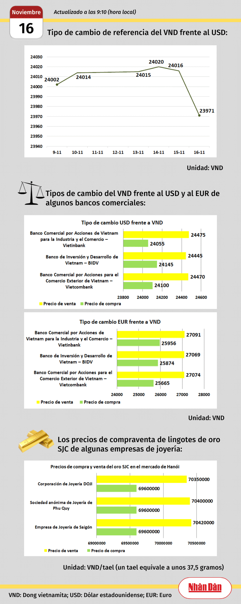 Infografía: Mercado de divisas y oro de Vietnam - 16 de noviembre de 2023