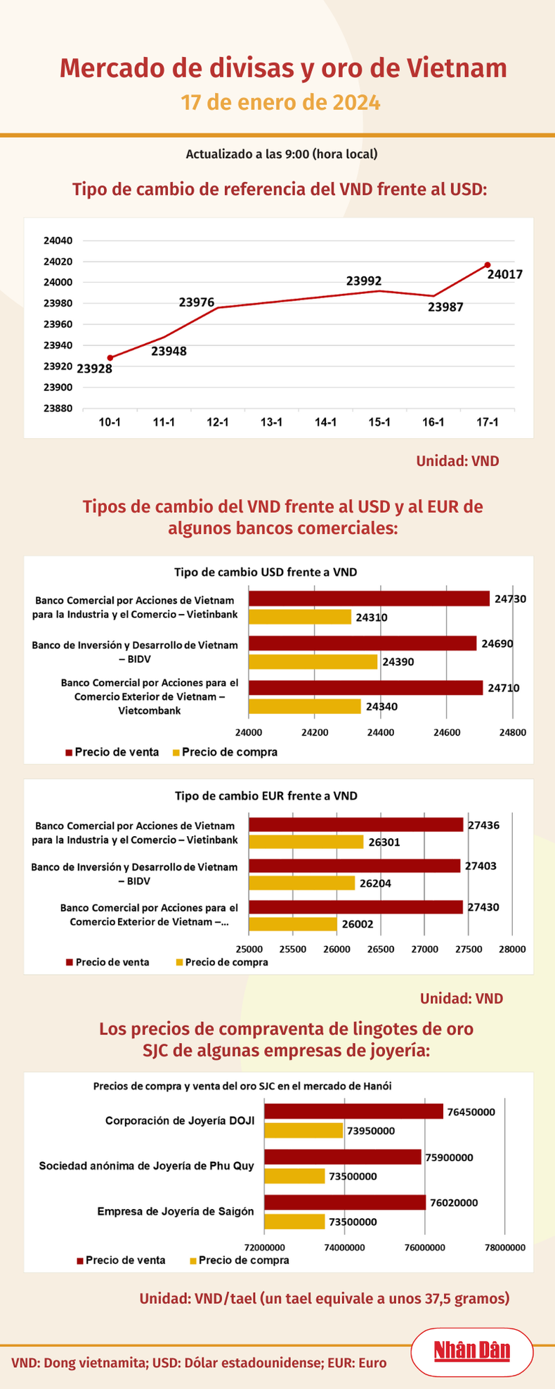 Infografía: Mercado de divisas y oro de Vietnam - 17 de enero de 2024