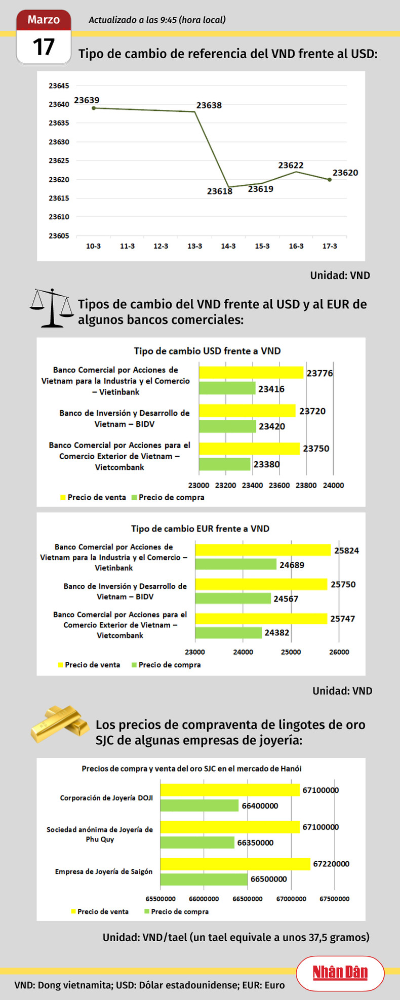 Infografía: Mercado de divisas y oro de Vietnam - 17 de marzo de 2023