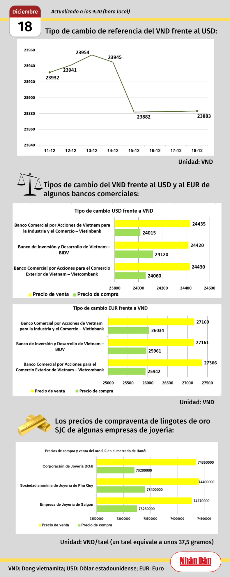 Infografía: Mercado de divisas y oro de Vietnam - 18 de diciembre de 2023