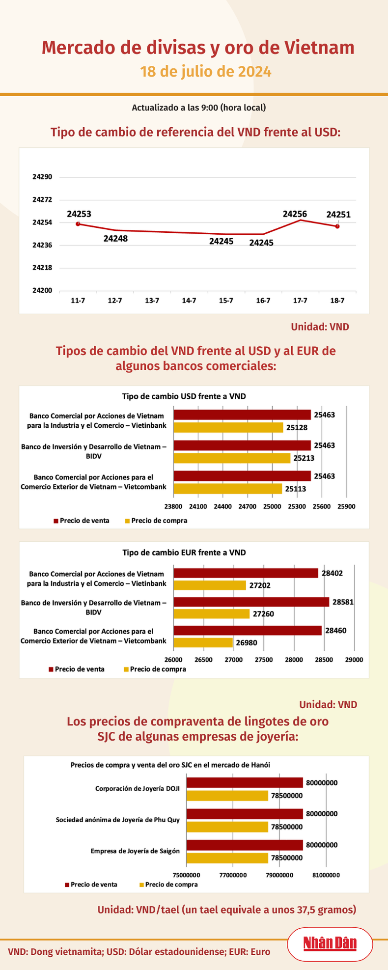 Infografía: Mercado de divisas y oro de Vietnam - 18 de julio de 2024