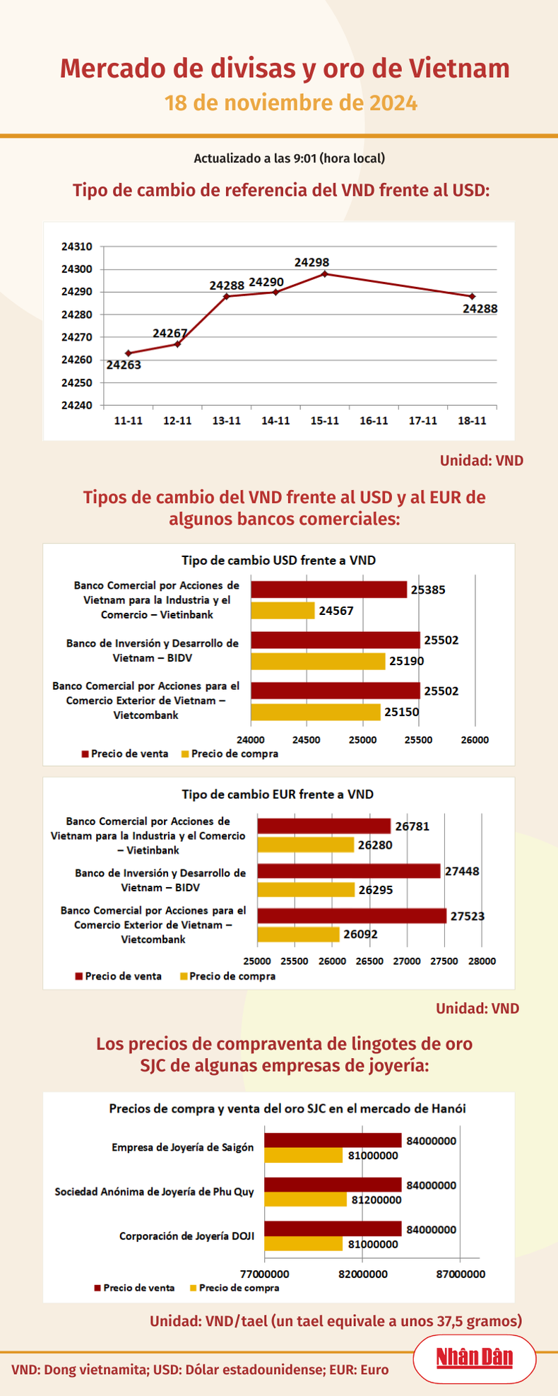 Infografía: Mercado de divisas y oro de Vietnam - 18 de noviembre de 2024