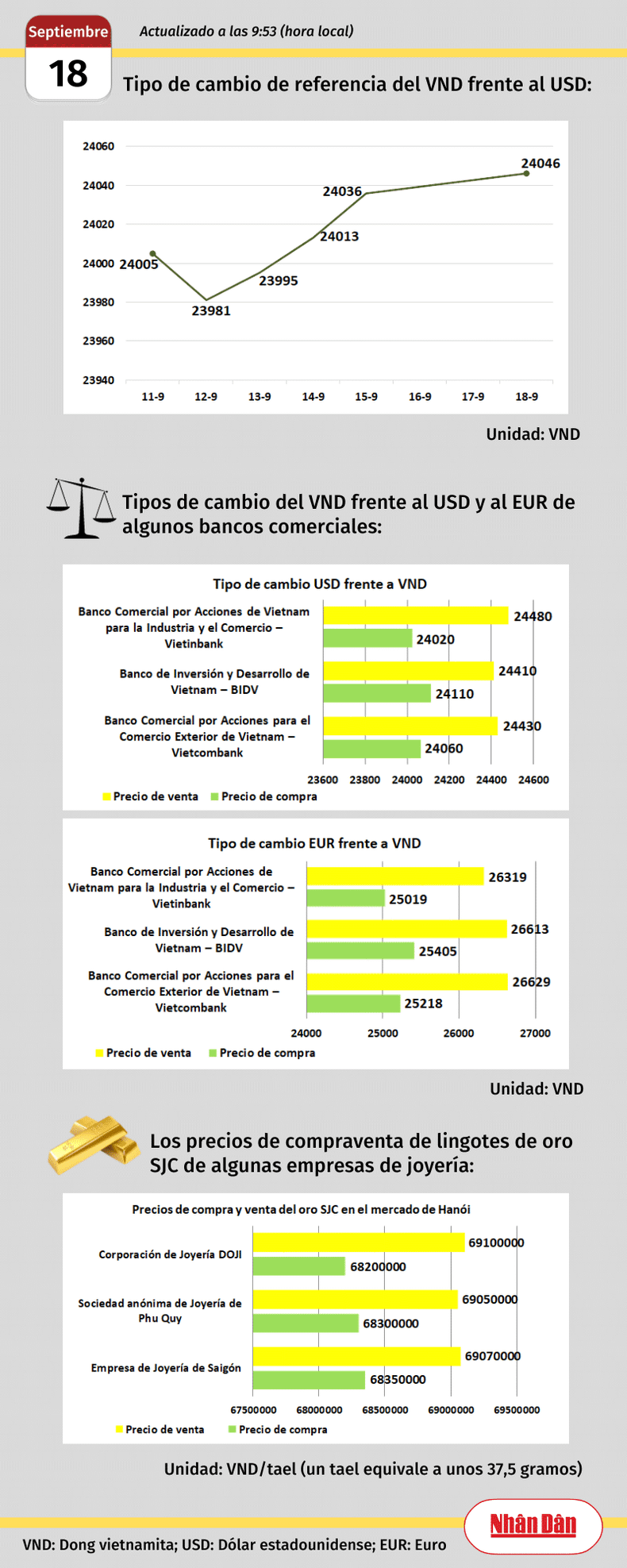 Infografía: Mercado de divisas y oro de Vietnam - 18 de septiembre de 2023